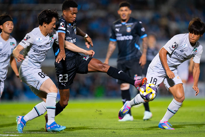 82分、フロンターレの攻撃。自陣からボールを運び左サイドから崩しをかけるがフィニッシュにつながらず。83分、福岡の攻撃。パスをつながれ橋本に強烈なミドルシュートを打たれ、GK山口がはじいたボールにウェリントンが詰めるがジェジエウが対応。84分、パスをつながれ押し込まれる時間が続くが守備陣が耐える。85分、左サイドから崩しをかけられゴール前でパスを受けた碓井にシュートを決められる(2-4)。88分、パスをつながれ押し込まれる時間が続く。88分、左サイドからクロスが入り逆サイドでフリーでボールを受けた紺野にシュートを決められる(2-5)。90+3分、背後のスペースにボールが入りウェリントンに抜け出されるがオフサイドの判定。90+4分、フロンターレの攻撃。中盤左からのフリーキック。大関のボールが入り、こぼれ球を拾うがフィニッシュにつながらず。90+5分、福岡の攻撃。左サイドから崩しをかけられるが守備陣がしのぐ。90+6分、自陣からボールを運ばれ速攻を狙われるが守備陣が耐える。90+7分、パスをつながれ押し込まれるが守備陣が耐える。90+9分、右サイドに振られクロスが入るがジェジエウがクリア。90+10分、右サイドに振られ名古のクロスをウェリントンにヘッドで合わせられるが枠を外れる。2-5で試合終了となった。