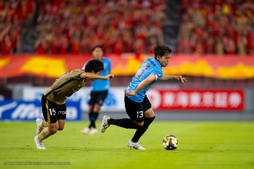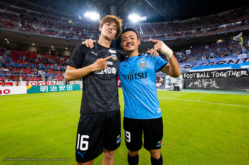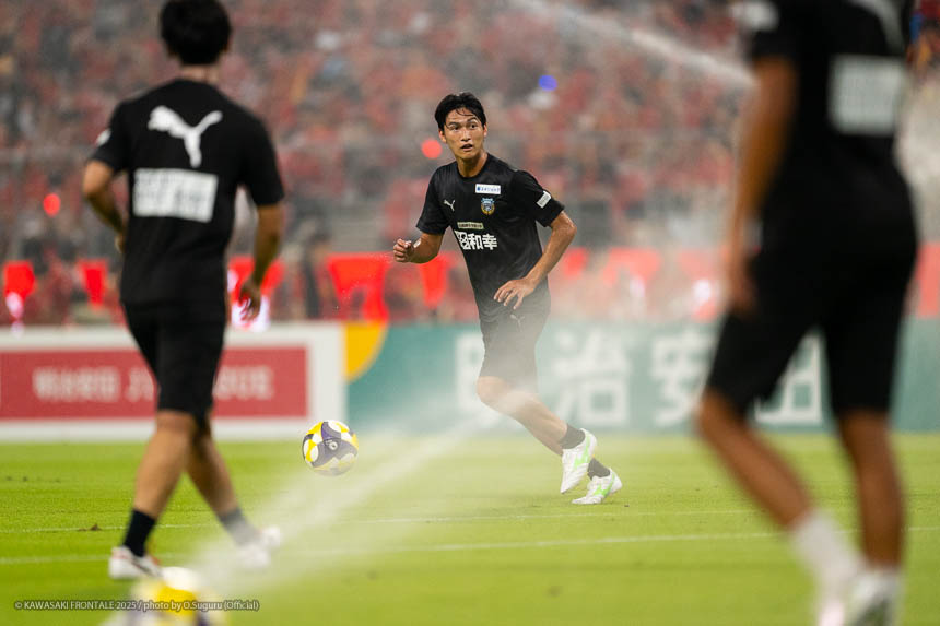 ひさびさにフロンターレに帰ってきたが、チームの雰囲気自体は悪くない。いまはチームが勝てていないが、ここからまた勝てるように。そこに自分が絡んでいけるようにしたい。期限付き移籍先の仙台では守備の強度、攻撃面では自分のプレーで違いを作るというところを練習や試合で積み重ねてきた。仙台で学んできたものや自分の得意なプレーのドリブルをフロンターレのサポーターの皆さんの前でも…