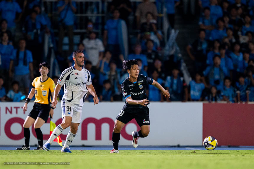 - (先制点のシーンは)ここ最近シュートの感覚がよくて、今日も試合前のアップのときからシュートの感覚がよかった。カウンターになって自分がボールを運んだときにDFがコースを切りながら並走している感じだったが、外側を巻けばシュートコースがあるなと一瞬思って蹴った。そのあと逆転されてしまったが前半で早い時間帯だったので、まだ大丈夫だと思った。そこで前半終了間際にユウキ(山本悠樹)のパスからエリソンが決めて同点に追いついてくれた。あれが本当に大きかった。2-2でハーフタイムに入って、この暑さでこういうぎりぎりの戦いになったときにホームのサポーターと戦えるのが自分たちのアドバンテージだと思っていた。皆さんのおかげもあって、こうして最後に相手を突き放して勝つことができてうれしい。