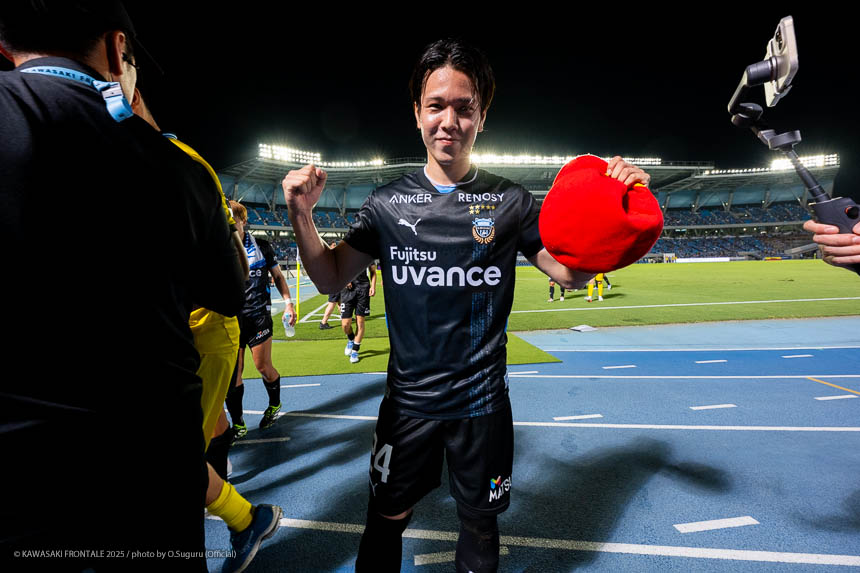 - 課題もたくさんあるゲームだったと思うが、勝ち切ることができたのはよかったと思う。(2点目をアシストした場面は)自分たちのミスからゲームをひっくり返されてよくない流れだったので、前半で返したい気持ちがあった。前半終了間際ということで町田さんが引いてゴール前を固めている雰囲気があったなか、自分はフリーだったのでボールを通すだけだった。難しいゴールだったと思うがエリソンが動き出してくれたのがありがたかったし、本当にエリソンがすばらしかった。後半は相手がマンツーマン気味の守備だったので、マルシーニョのストロングポイントが出やすい状況だった。それは自分だけでなくアサヒ(佐々木旭)、ルイ(山口瑠伊)も気づいていたし、チームとしてその状況判断ができていたのもよかったと思う。エリソンの個の力もあるが、今日のように攻められている苦しい展開でもスプリントをかけてゴール前に入っていけているのはいいことだと思う。ただ失点が多いのは課題だと感じている。チームのなかで失点に対しての話をしているし、監督からもどう守るのかの話がある。そのなかで、球際などで先にボールに触る、ちゃんと守り切ることがすごく大事。次の試合はトーナメントのカップ戦なので、失点している場合ではない。準備期間は短いがチームとして取り組んでいければと思っている。