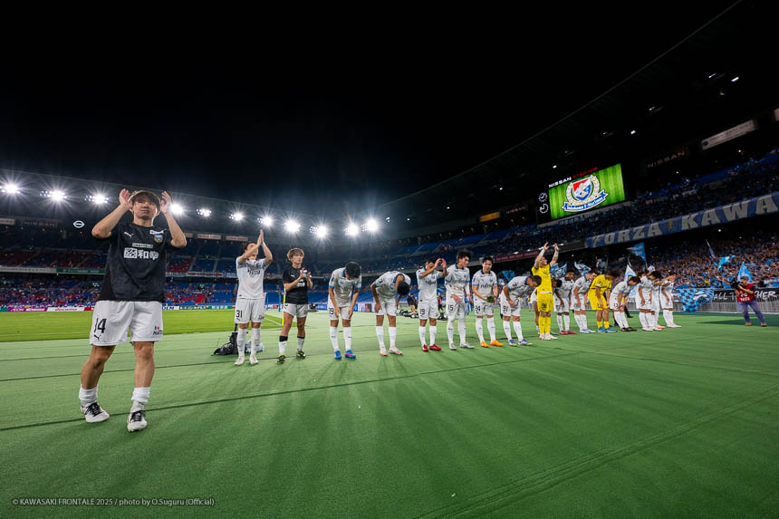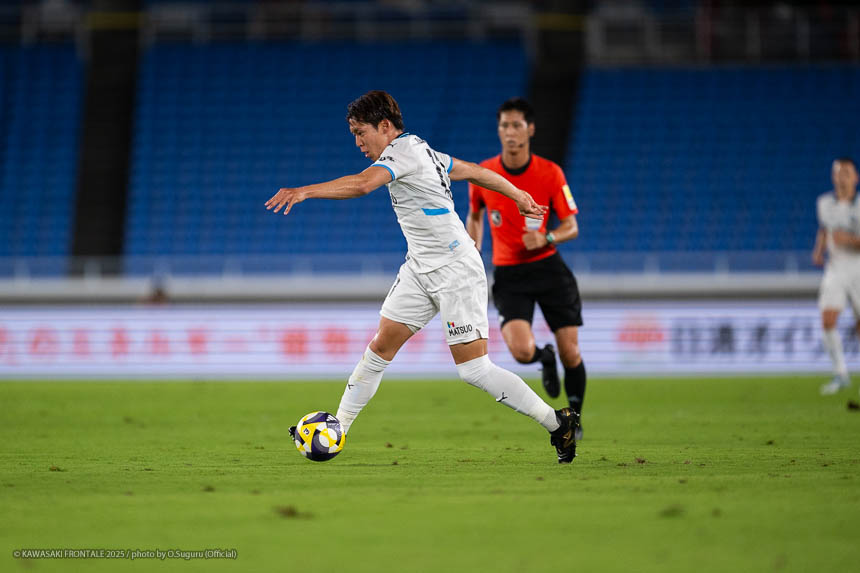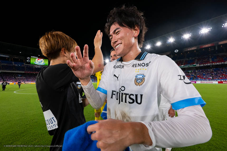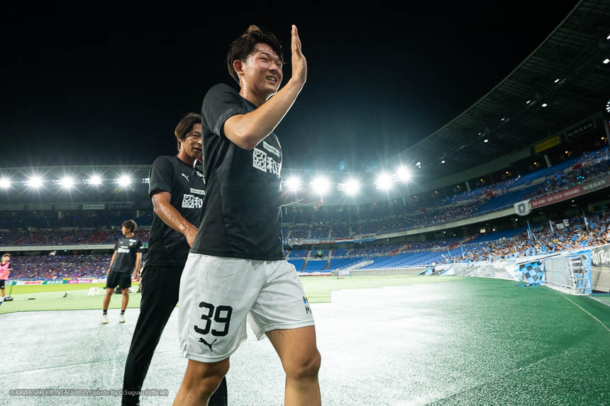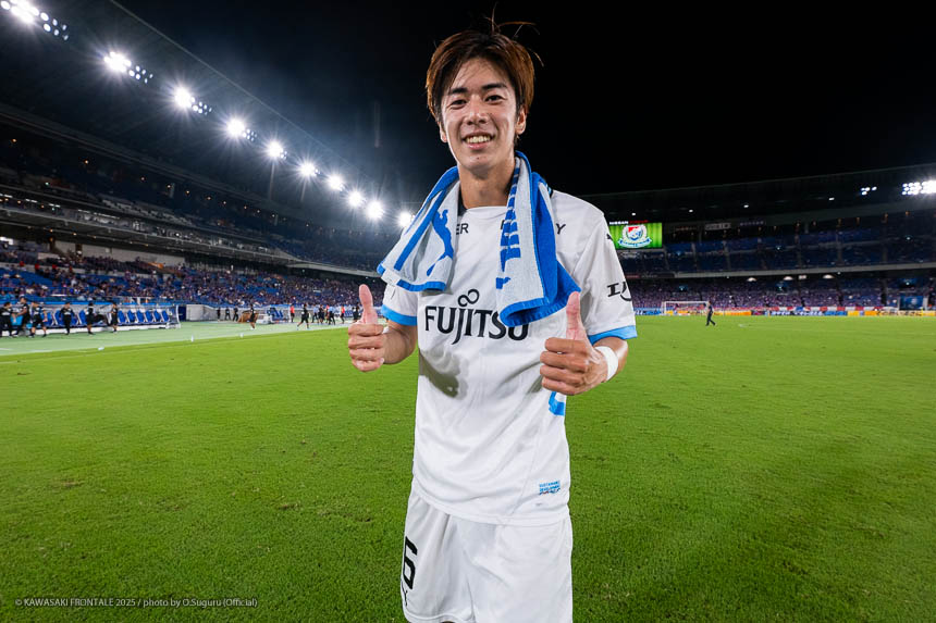 - 先制点のシーンはタツヤ(伊藤達哉)の足の速さなら入れ替われるかなと思ってボールを流して出すことができた。相手は最後まで見て判断を変えてくる印象があったのでカウンターでチャンスがあると思っていたし、読み合いも含めて比較的いい形で守れたと思う。無失点での勝利はミーティングでも話し合っていたなかで達成できたことだし、何よりも自分たちのサッカーができてよかった。自分たちは首位を争っているチームにも勝っているし、勝点を落とさなければ優勝争いに戻ってこられると思う。フロンターレは終盤に勝ちきっていくチームなので、最後まで駆け抜けていきたい。