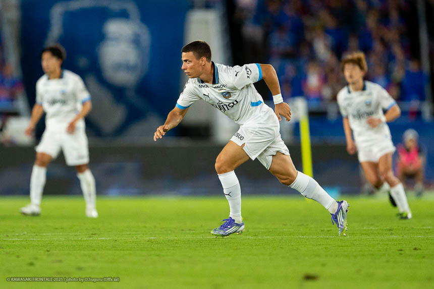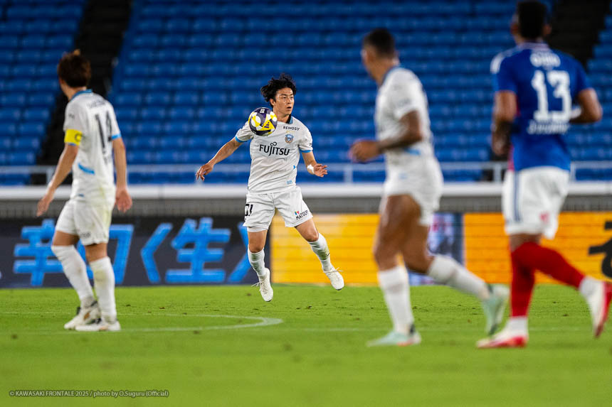 69分、フロンターレの攻撃。相手陣内でボールを動かし、セカンドボールを拾って圧力をかけるが横浜FMにしのがれる。70分、右コーナーキックの場面。三浦のボールはクリアされる。こぼれ球を拾って伊藤が左サイドから突破をしかけるがブロックされる。71分、左コーナーキックの場面。脇坂のボールはGKがパンチング。こぼれ球を拾って際が左サイドからクロスを入れるがGKにキャッチされる。72分、エリソンに代わりロマニッチ、マルシーニョに代わり宮城がピッチへ。76分、フロンターレの攻撃。ウレモヴィッチが右サイドに展開。際が粘って深い位置に入り込みシュート性のボールを入れるがGKにキャッチされる。77分、横浜FMの攻撃。パスをつながれ押し込まれるが守備陣が落ち着いて対応。78分、フロンターレの攻撃。中盤でボールを回し伊藤が右サイドからアーリークロスを入れるがGKにキャッチされる。80分、横浜FMの攻撃。中盤右サイドからのフリーキックの場面。天野のボールはそのままラインを割る。80分、山本に代わり河原、脇坂に代わり大関がピッチへ。81分、フロンターレの攻撃。ウレモヴィッチのロングボールをロマニッチが収めカウンターを狙うがオフサイドの判定。82分、中盤でボールを奪いカウンターにつなげ、大関が左サイドからシュートを放つがDFに当たりGKにキャッチされる。83分、横浜FMの攻撃。右サイドチェンジから天野に突破をしかけられるが三浦が対応。84分、リスタートの流れ。右サイドチェンジからゴール前にボールがこぼれ植中に左サイドからシュートを狙われるが枠を外れる。アディショナルタイム10分。90+4分、横浜FMの攻撃。セカンドボールを拾われ右サイドからクロスが入るがウレモヴィッチがクリア。さらにセカンドボールを拾われ圧力をかけられるが守備陣が対応。90+4分、伊藤に代わり田邉がピッチへ。90+5分、自陣からボールを運びゴール前に迫るがオフサイドの判定。90+7分、横浜FMの攻撃。ボールを奪い返され右サイドから加藤に突破をしかけられるが三浦が対応。迎えた90+8分、フロンターレの攻撃。ロングボールをロマニッチが収めて田邉が右サイドから中央に入り、ルーズボールに反応した宮城が左サイドから切れ込みシュートを決める。(3-0)90+10分、フロンターレの攻撃。中盤でボールを奪いロマニッチを起点にカウンターにつなげ宮城がミドルシュート。GKがはじいたボールを田邉がヘッドで合わせるがゴール上に外れる。惜しい場面だった。試合は3-0でタイムアップ。
