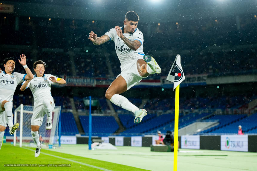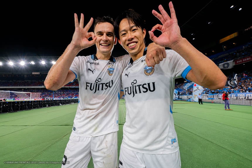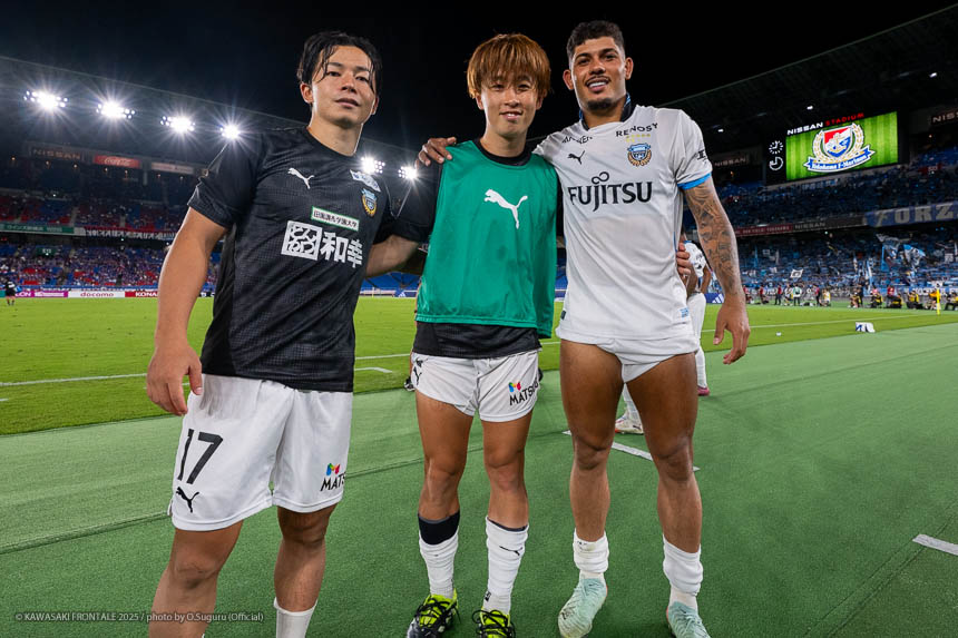 後半立ち上がりにお互いにチャンスを決めきれない流れのなか、エリソンと山本でカウンターをしかけてPKを獲得。エリソンがPKを決めたあとは、数的優位の状況でフロンターレがゲームをコントロール。アディショナルタイムに宮城がシュートを決めて勝負を決め、今シーズン初のリーグ戦3連勝を果たした。