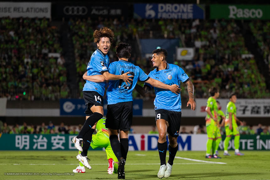 - 少し落ち着かない試合展開で、立ち上がりは相当悪かった。ハーフタイムで修正することはできたが、距離感が悪くてボールをつなぐのか蹴るのかが定まっていなかった。そのなかでも失点をせずに耐えて得点できたのは前半の評価できるところだと思う。後半は追加点を取れたのはよかったが、セットプレーで失点してしまったので修正していきたい。1点目はウイングバックの選手が開いていて右センターバックがエリソンに目がいっていたので、そこにランニングしていいタイミングでユウキくん(山本悠樹)が出してくれた。即興ではあったが意図的にできたプレーだった。アシストがついたかどうかはわからないが、ついていればいいなと思う。2点目のシーンはいい形でインターセプトができて、右サイドの選手が前がかりになっていて裏のスペースが見えてファーストタッチもうまくいった。そのあとユウさん(小林悠)が感じていたので、相手の嫌なところにボールを流し込めて最終的に得点につながったのでよかった。