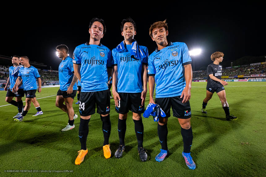 - ファン、サポーターの皆さんは自分たちに期待をして応援してくれている。だから多摩川クラシコの負けは相当悔しかったし、その次の試合が大事だと思っていたので勝ててよかった。(得点シーンについて)いままでは右サイドを余裕がないなかでやっていたが、慣れてきて選択肢が増えてきた。そのなかで得点の前のシーンで決めきりたかったが、ユウさん(小林悠)がもう1回いいボールをくれて泥臭かったが決められてよかった。順位表だったりあと何試合とかではなく、目の前の1試合に勝つことだけに集中したい。その積み重ねが結果につながってくると思っている。