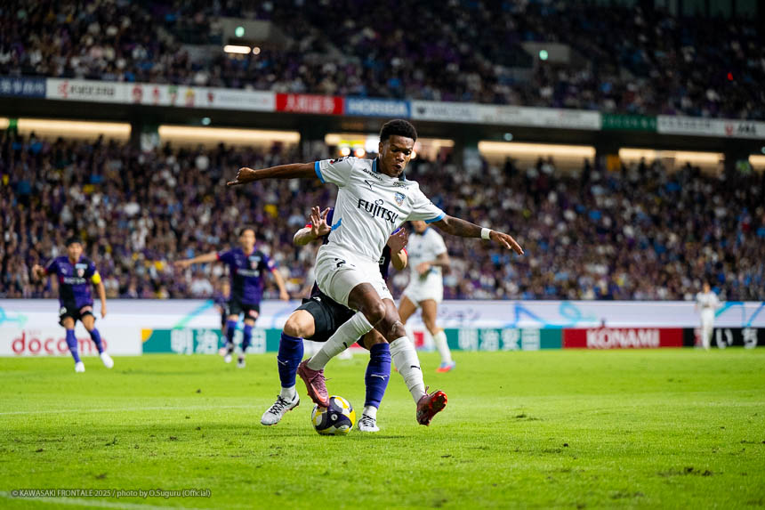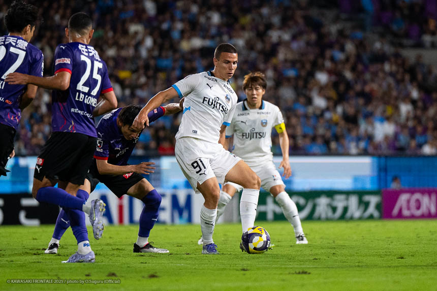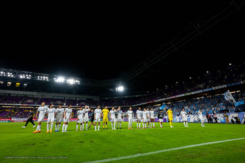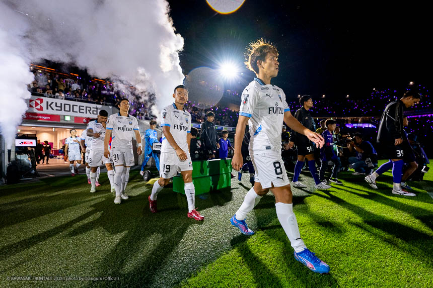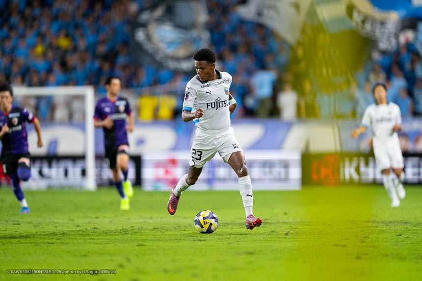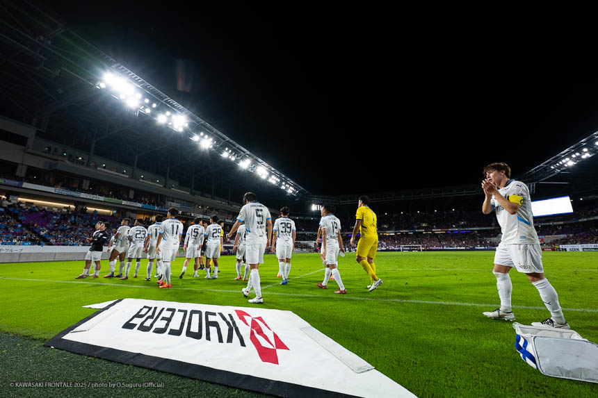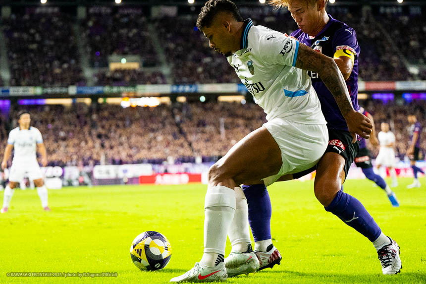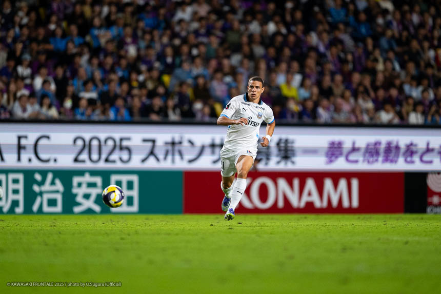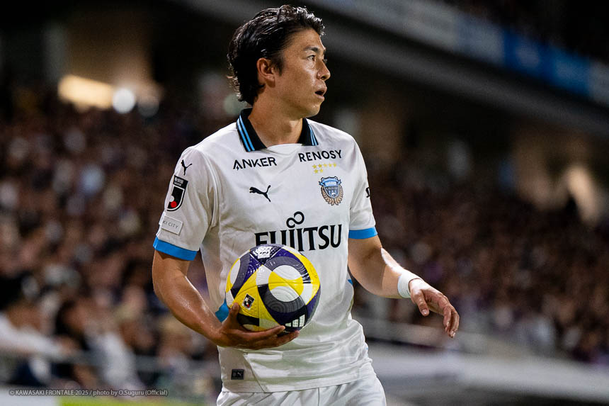 25分、京都の攻撃。パスをつながれ右サイドから崩しをかけられるが守備陣がしのぐ。さらにパスをつながれ押し込まれるがチームディフェンスで対応。26分、中盤でボールをカットされショートカウンターを浴び、ペナルティエリア前の奥川にボールが渡るが守備陣が対応。26分、フロンターレの攻撃。直後にカウンターをしかけ、左サイドの伊藤が粘って速いボールを入れゴール前に飛び込んだ河原が足を伸ばすがゴール上に外れる。惜しい場面だった。27分、京都の攻撃。左サイドから崩しをかけられるが守備陣が対応。28分、フロンターレの攻撃。直後に反撃をかけ伊藤が時間を作り右サイドからシュートを放つがGKにセーブされる。さらにウレモヴィッチが背後のスペースにボールを入れ、前線でエリソンが競り合うがフィニッシュにつながらず。29分、パスをつないで左サイドから崩しをかけ、脇坂とのパス交換から伊藤が左サイドからシュートを放つがゴール右に外れる。惜しい場面だった。31分、京都の攻撃。ロングボールのこぼれ球を拾われゴール前に圧力をかけられるが守備陣がしのぐ。32分、セカンドボールを拾って相手陣内でボールを動かす。33分、京都の攻撃。逆にカウンターを狙われるが橘田が戻り対応。36分、京都の攻撃。中盤でボールを回され押し込まれるがチームディフェンスで対応。36分、フロンターレの攻撃。自陣からボールを運びゴール前に圧力をかけ、最後は際が深い位置から折り返すがGKにキャッチされる。迎えた38分、京都の攻撃。右サイドから崩しをかけられセカンドボールを拾われ、ペナルティエリア右の深い位置をとられると、折り返しに合わせた松田のシュートを須貝に押し込まれる。(1-1)40分、フロンターレの攻撃。左コーナーキックの場面。脇坂のボールはクリアされる。こぼれ球を三浦が合わせるがシュートは枠を外れる。43分、京都の攻撃。中盤から長いボールを入れられるがGKソンリョンがキャッチ。44分、フロンターレの攻撃。中盤でボールを奪い返し伊藤が右サイドからアーリークロスを入れるがGKにキャッチされる。44分、京都の攻撃。自陣でボールを奪われるが守備陣が対応。45分、フロンターレの攻撃。直後にマルシーニョのドリブルからカウンターにつなげ脇坂、橘田とシュートに持ち込むが京都ディフェンスにしのがれる。アディショナルタイム3分。45+2分、京都の攻撃。自陣でボールを奪い返され右サイドからのクロスをファーサイドで松田にヘッドで合わせられるがGKソンリョンがキャッチ。45+3分、中盤でボールを回され右サイド裏のスペースを狙われるが守備陣が対応。立ち上がりにカウンターから伊藤がシュートを決めて幸先よく先制。その後も押し気味に試合を進めるがチャンスをものにできず。すると京都の反撃を浴びワンチャンスを決められ失点。1-1で前半を折り返した。