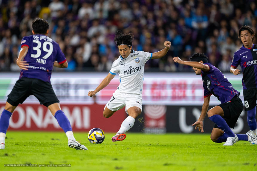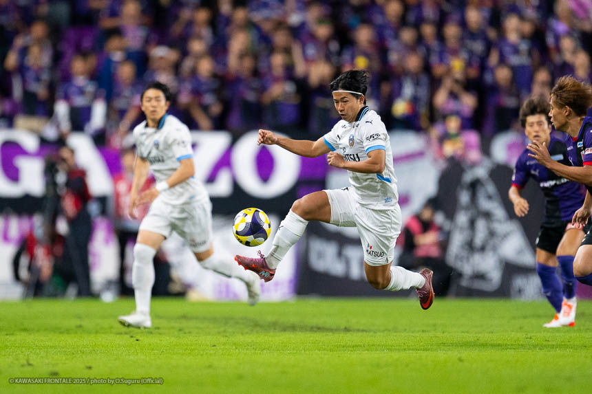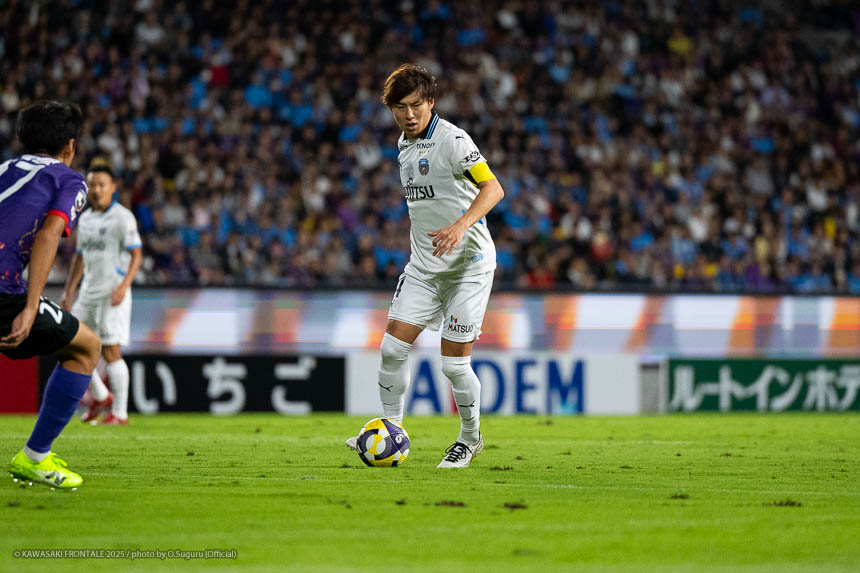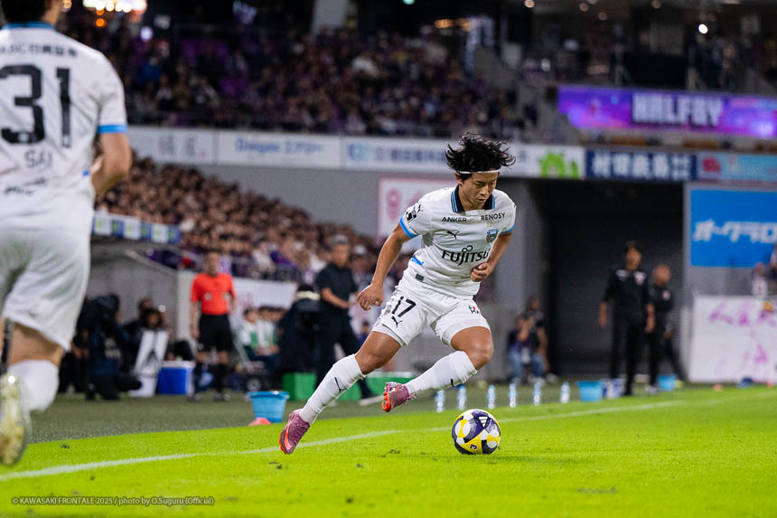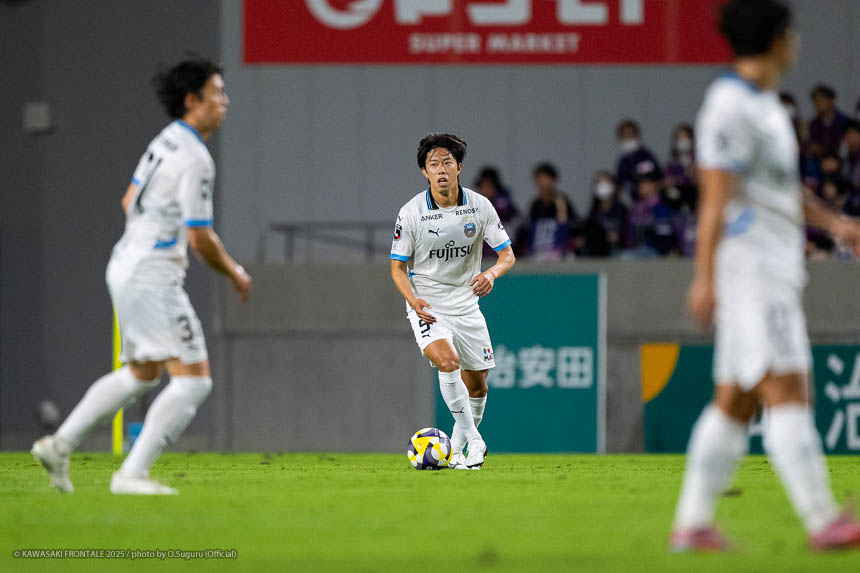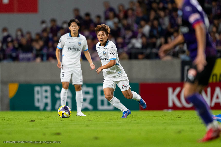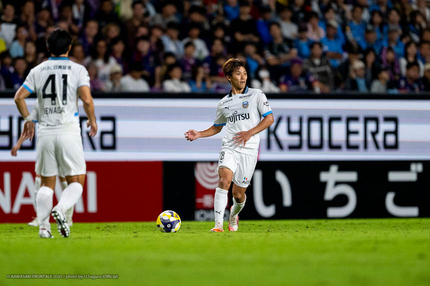 - 勝ちたかったし勝てたゲームだと思うので、より悔しさがある。失点の場面はしっかり崩されてしまったが、自分たちが2点目、3点目を確実に決めきることが大事だったと思う。京都さんは1対1の局面を多く作って、守備でしっかりはめるサッカーで上位にいる。ただ自分の立ち位置のとり方でビルドアップの逃げ道になったり、相手がマンツーマンで来づらいような立ち位置を意識していた。ここ最近はターンの感覚も研ぎ澄まされているので、ボールを取られる気がしない。ケント(橘田健人)とソウ(河原創)にはどんどん自分につけてくれとお願いしていた。ただ、そこで決定的な仕事をしなければいけないので、また次に向けていい準備をしたい。