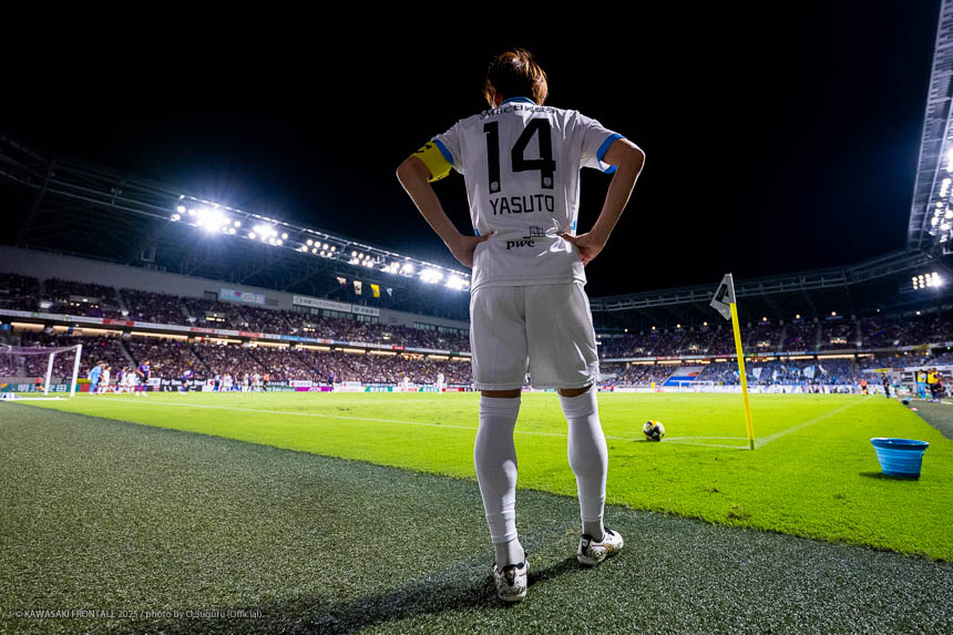 74分、フロンターレの攻撃。ペナルティエリア前からのフリーキックの場面。脇坂が直接シュートを狙うがゴール右に外れる。惜しい場面だった。74分、マルシーニョに代わり家長、エリソンに代わりロマニッチがピッチへ。80分、フロンターレの攻撃。相手陣内でボールを奪いペナルティエリア内にボールが入るがフィニッシュにつながらず。82分、パスをつないでサイドの揺さぶりをかけ伊藤が左サイドから折り返すがゴール前に合わず。83分、さらに左サイドから崩しをかけ三浦が深い位置に入り込み折り返すがロマニッチに合わず。さらに右サイドからの折り返しの流れたボールを伊藤が狙うがシュートはGKに止められる。85分、伊藤に代わり宮城がピッチへ。87分、フロンターレの攻撃。パスをつないで右サイドウレモヴィッチがクロス。こぼれ球を拾い河原からボールを受けた宮城がシュートに持ち込むが枠を外れる。迎えた88分、ロマニッチが2枚目のイエローカードを受け退場処分となり数的不利な状況になる。90分、京都の攻撃。左サイドに振られ圧力をかけられるが守備陣がしのぐ。アディショナルタイム6分。90+1分、フロンターレの攻撃。リスタートの流れからセカンドボールを拾って圧力をかけるがフィニッシュにつながらず。90+2分、京都の攻撃。ロングボールのこぼれ球を拾われペナルティエリア内で混戦となるが守備陣がしのぐ。さらに原に右サイドから浮き球を入れられ、フリーで長沢に合わせられるがシュートはゴール右に外れる。危ない場面だった。90+4分、リスタートの流れからロングボールを入れられるが守備陣がクリア。90+4分、フロンターレの攻撃。自陣からボールを運び河原がドリブルで運びラストパスを狙うが京都ディフェンスに止められる。90+5分、右コーナーキックの場面。脇坂のボールはクリアされる。さらに攻勢をかけて橘田の浮き球をゴール前の脇坂がダイレクトで合わせるが、シュートは惜しくもGKに触られる。90+6分、左コーナーキックの場面。脇坂のボールはGKにキャッチされる。90+6分、京都の攻撃。直後に反撃をかけられ一気にペナルティエリア内にボールを運ばれるが守備陣がしのぐ。試合は1-1でタイムアップ。
