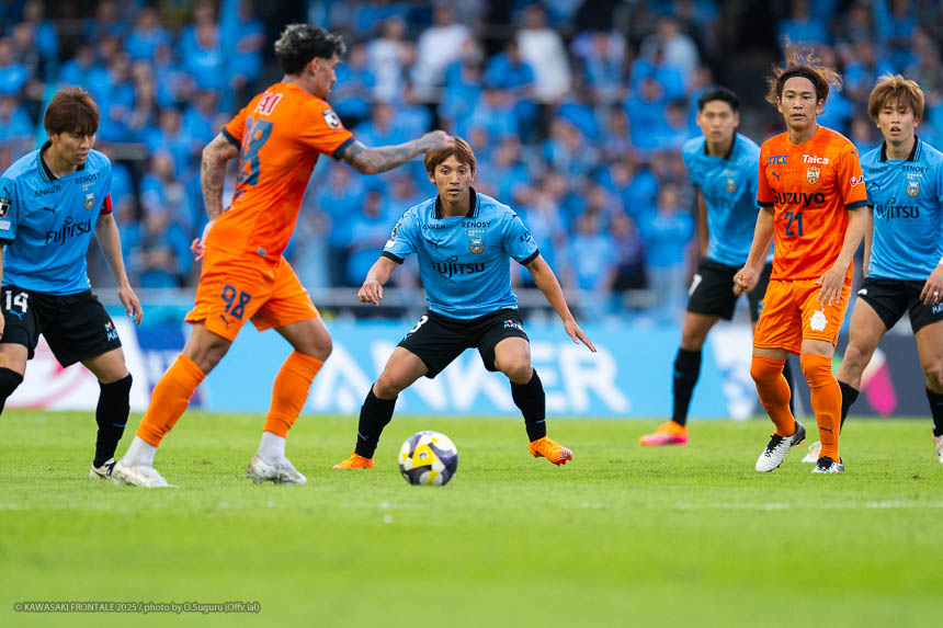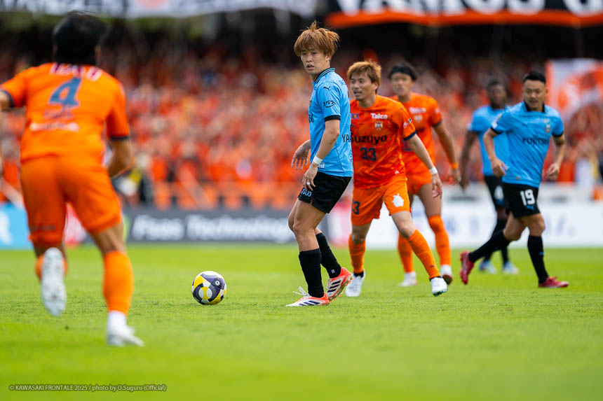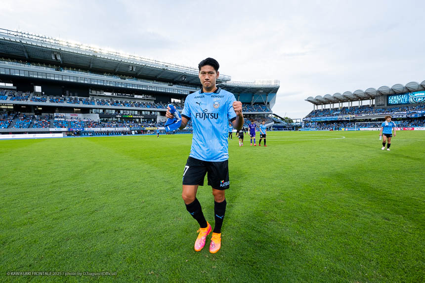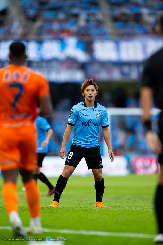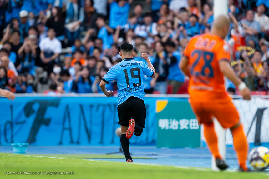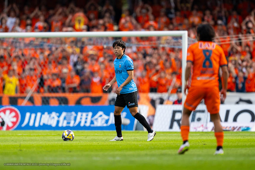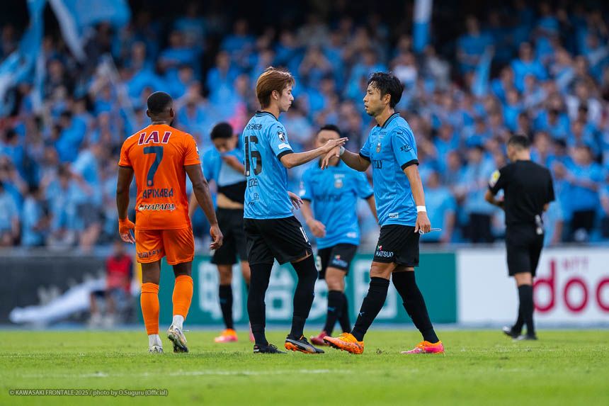 - ゴールシーンはショートカウンターのような形で前向きのヤストくん(脇坂泰斗)に落として、もう1回使ってもらえた。あとは相手が股を閉じるようだったら外側も狙える自分の得意な位置だった。決まってよかった。みんなで話し合っていたわけではないが、個人としてルヴァンカップのような試合のあとのリアクションが大事だと思っていた。各々がそういう気持ちを持っていたからこそ結果にもつながったのかなと思う。前半の最後に失点をしなければ自分がフロンターレに入ってから一番いい45分間だったと思う。後半の立ち上がりにも失点をしてしまっているのでもったいない。