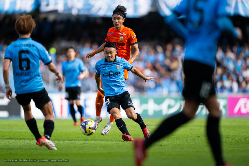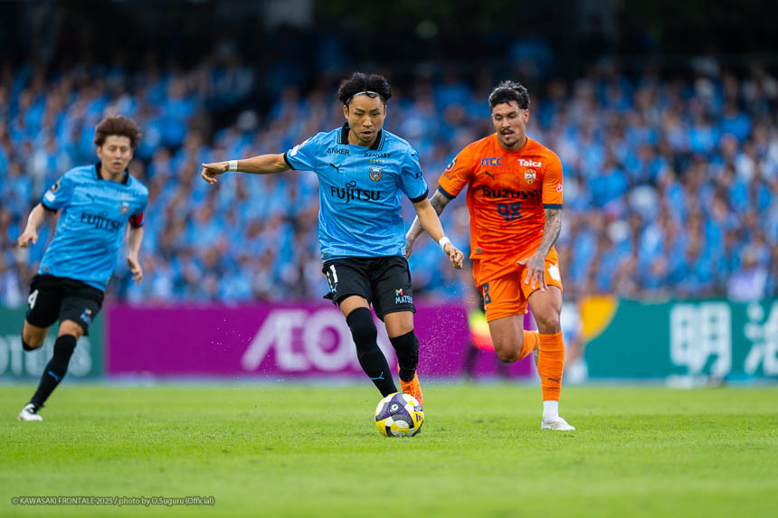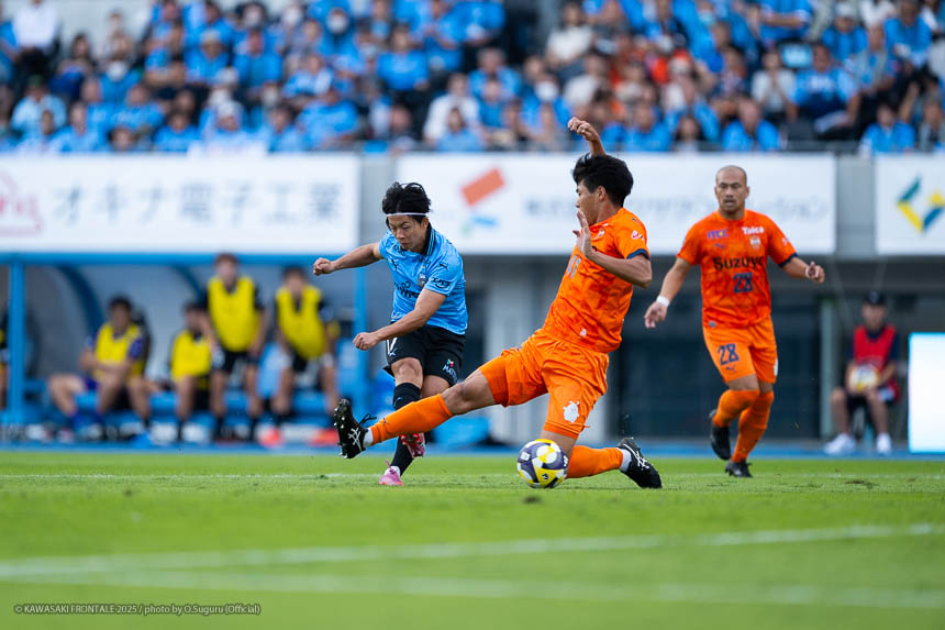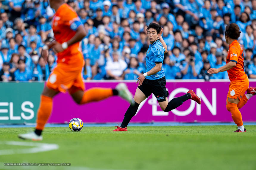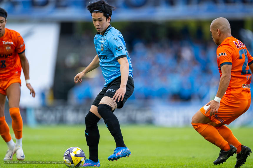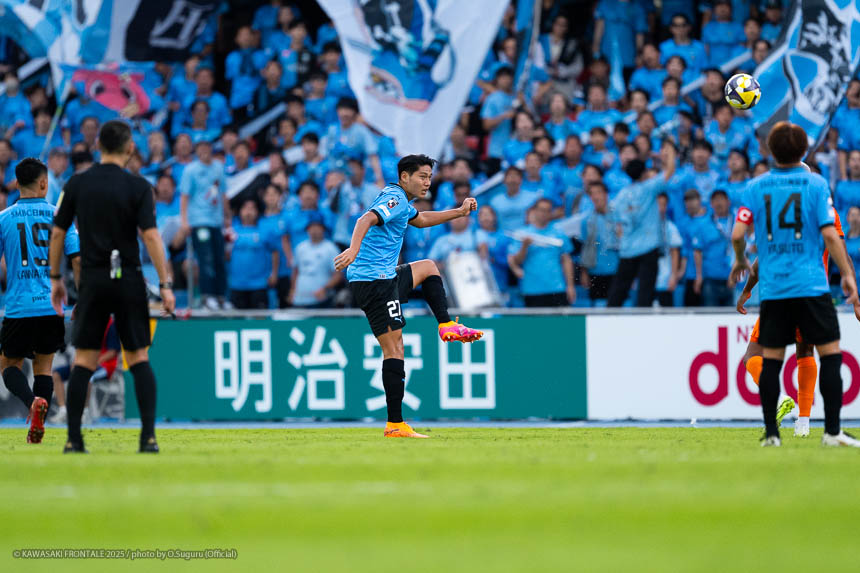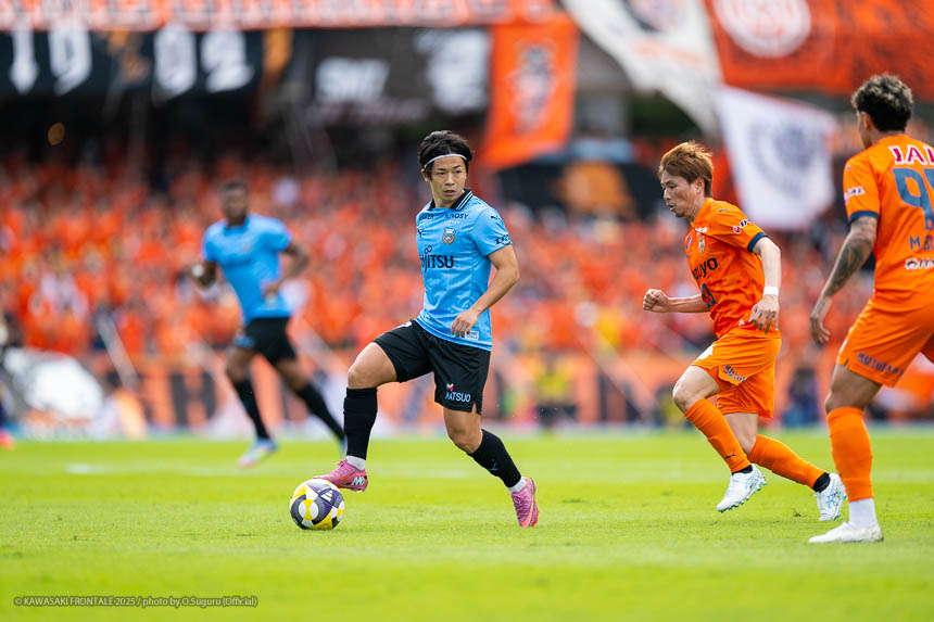 - ゴールシーンはショートカウンターのような形で前向きのヤストくん(脇坂泰斗)に落として、もう1回使ってもらえた。あとは相手が股を閉じるようだったら外側も狙える自分の得意な位置だった。決まってよかった。みんなで話し合っていたわけではないが、個人としてルヴァンカップのような試合のあとのリアクションが大事だと思っていた。各々がそういう気持ちを持っていたからこそ結果にもつながったのかなと思う。前半の最後に失点をしなければ自分がフロンターレに入ってから一番いい45分間だったと思う。後半の立ち上がりにも失点をしてしまっているのでもったいない。