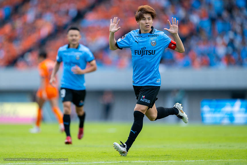 - 試合を通して風の影響があるピッチだったが、そういうなかで自分がプレーで示していかなければと思っていた。ゴールシーンはいいパスが入って内側にターンができて、ファーを見せながらニアという狙いどおりのゴールだった。チームとしてはもっと失点を減らせるし、もっと得点を取れると思う。いまのフロンターレの課題と可能性が出たゲームだったと感じている。ルヴァンカップのようなゲームのあとはすごく大事。このままズルズルいくのかどうなのか。今回に限らずシーズンを戦っていくと何回もそういったゲームが訪れるなかで、ホームでできたのはポジティブだった。立ち上がりから勝ちにいく姿勢は出せたかなと思っている。ただ守備で規律をもってやっていかなければ、後ろの選手だけでは守れない。4点入って多少緩んでしまうメンタルはわかるが、現代サッカーは1人でもサボるとやられる。相手の最終ラインが3枚から4枚に変わったなかで対応できていないようではまだまだ。それはチーム全体でやっていくしかないし、自分自身ももっと周りを動かすところはやっていかなければいけないと思う。