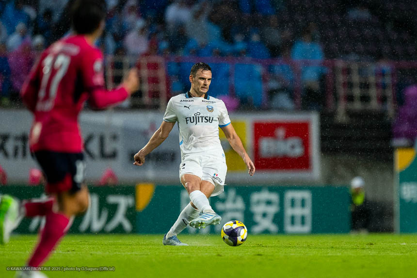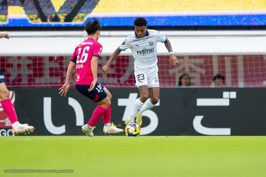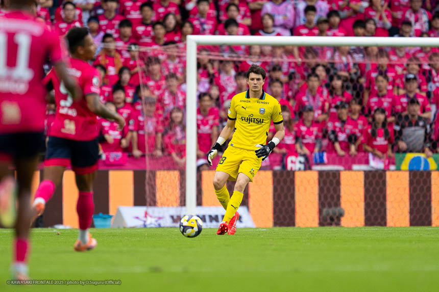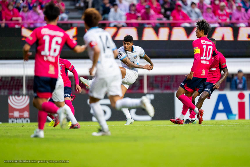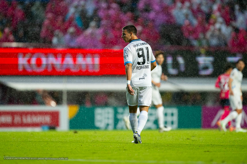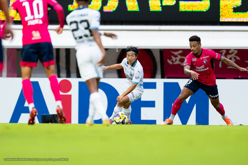 69分、フロンターレの攻撃。相手陣内で佐々木がボールを奪い返し、伊藤が左サイドから折り返しを狙うがボールはゴール前を通過。70分、パスをつないで右サイドから崩しをかけ、脇坂がゴール前にボールを入れるがクリアされる。71分、右コーナーキックの場面。山本のボールはクリアされる。72分、自陣からボールを運び右サイドから崩しをかけるがフィニッシュにつながらず。73分、C大阪の攻撃。カウンターを狙われ背後のスペースにボールを入れられるがウレモヴィッチが戻りながら対応。74分、フロンターレの攻撃。右サイドから崩しをかけ、家長が深い位置に入り込み折り返し。ファーサイドで佐々木が合わせるが枠に飛ばず。75分、伊藤に代わり宮城がピッチへ。76分、フロンターレの攻撃。ボールを奪い返し相手陣内に押し込むがフィニッシュにつながらず。77分、パスをつないで押し込み佐々木が粘って左サイドから折り返すがクリアされる。78分、左コーナーキックの場面。山本のボールはクリアされる。こぼれ球を拾い左サイドからの山本のクロスをウレモヴィッチがヘッドで合わせるがゴール右に外れる。惜しい場面だった。78分、エリソンに代わりロマニッチがピッチへ。81分、C大阪の攻撃。中盤右サイドからのフリーキックの場面。中島のボールはGK山口がパンチング。82分、左コーナーキックの場面。中島のボールは家長がクリア。こぼれ球を拾われるが守備陣がしのぐ。84分、左サイド裏のスペースにロングボールを入れられ、本間に深い位置に入り込まれ折り返されるがウレモヴィッチが対応。86分、フロンターレの攻撃。左サイドからのフリーキックの場面。山本のボールはGKにキャッチされる。88分、右サイドから崩しをかけるがC大阪ディフェンスにしのがれる。89分、さらに攻勢をかけて左サイドに展開。佐々木の速いボールに大関が飛び込み、ボールがこぼれるがGKにキャッチされる。アディショナルタイム5分。90+1分、C大阪の攻撃。中盤でボールを奪い返されカウンターを受け阪田に突破をしかけられるが、ウレモヴィッチが戻りながら対応。90+4分、フロンターレの攻撃。リスタートの流れ、左サイドから佐々木がゴール前にボールを入れるがクリアされる。90+5分、セカンドボールを拾って圧力をかけるがフィニッシュにつながらず。試合は0-2でタイムアップ。