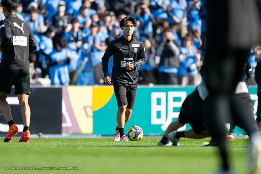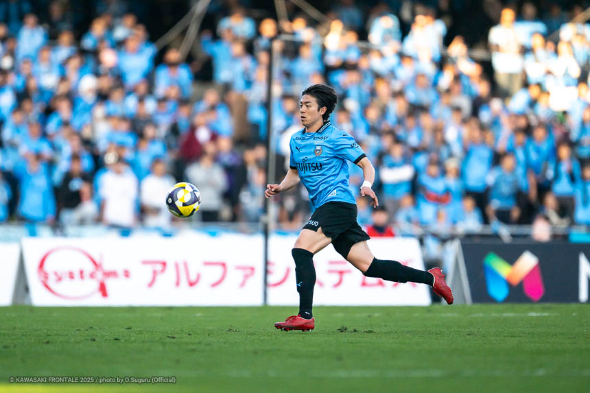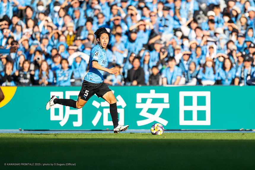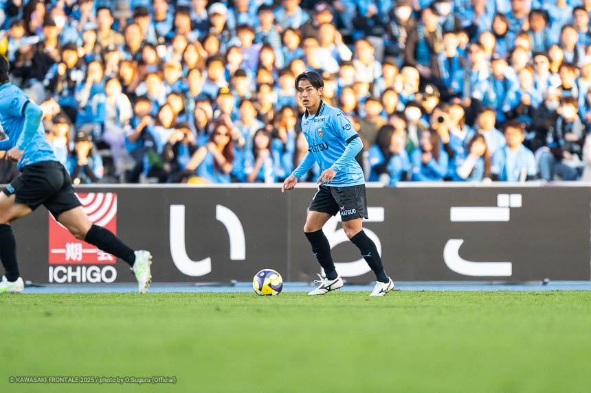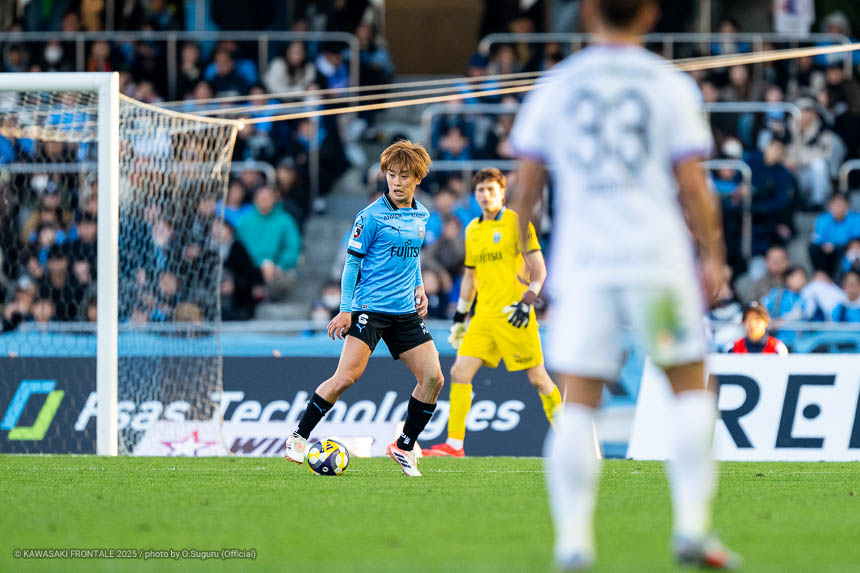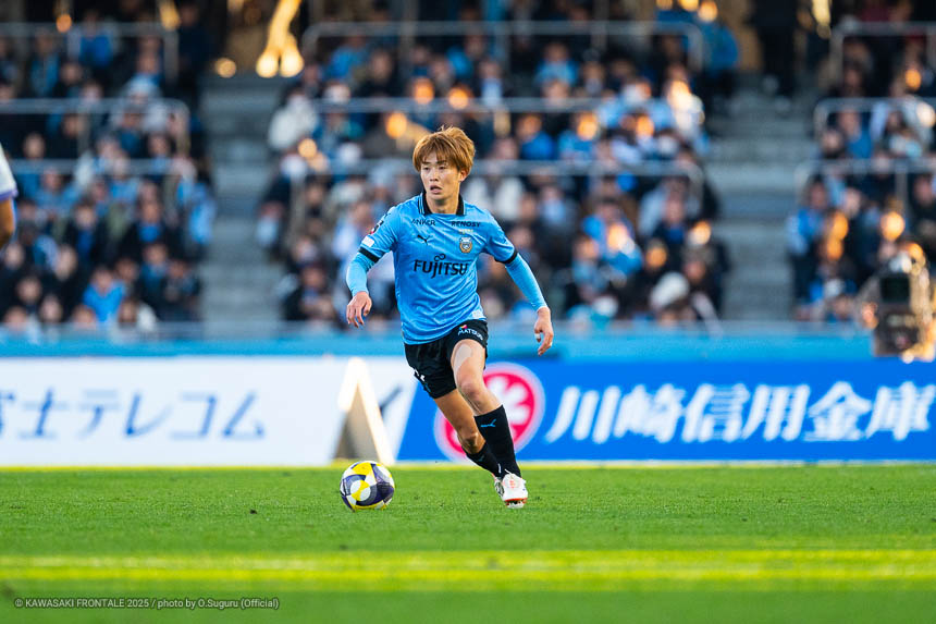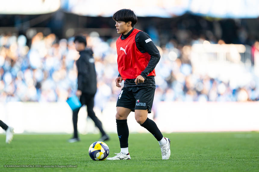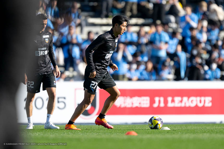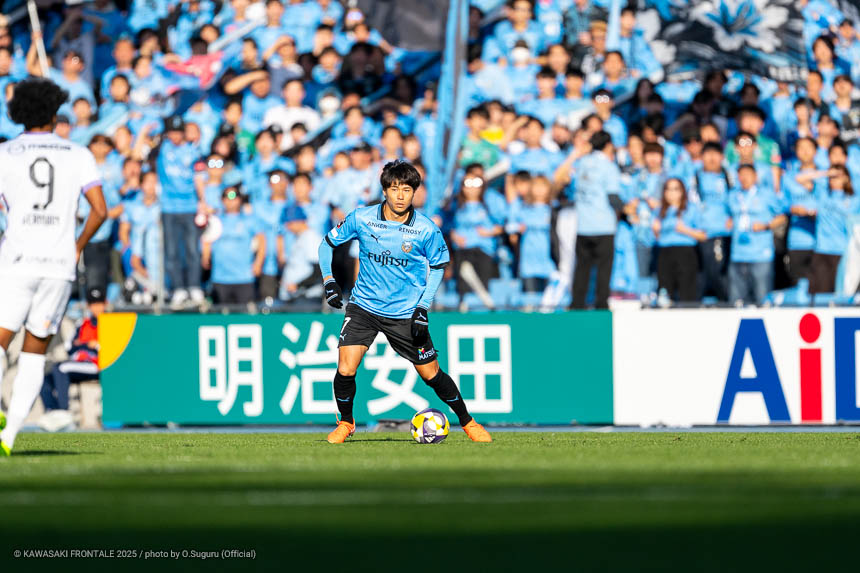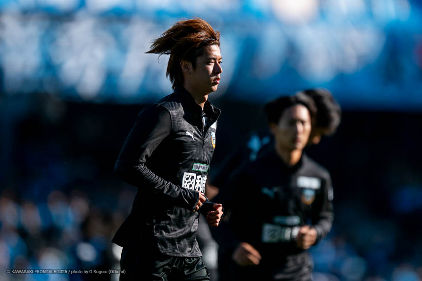 - 本当に憧れていたプロの舞台で初めてメンバーに入ることができたのはうれしく思うが、出場できていないし活躍もできていない。まだこれからという感覚。初めてメンバー入りした試合がホーム最終戦で、ソンリョンさん(チョン ソンリョン)、ジェジエウさん、安藤さん(安藤駿介)、車屋さん(車屋紳太郎)の挨拶を見て、これだけたくさんの温かいサポーターがいることに対してすごいなと思った。そんなクラブでプレーできるんだというワクワク感もある。ただ、普段の練習に参加させてもらってもまだ足を引っ張ってばかり。このチームはすばらしい選手がたくさんいるので、そういう人たちから少しずつでも吸収して、うまくなって、強くなって、フロンターレに新しいタイトルを持ってこられるような選手に成長したい。