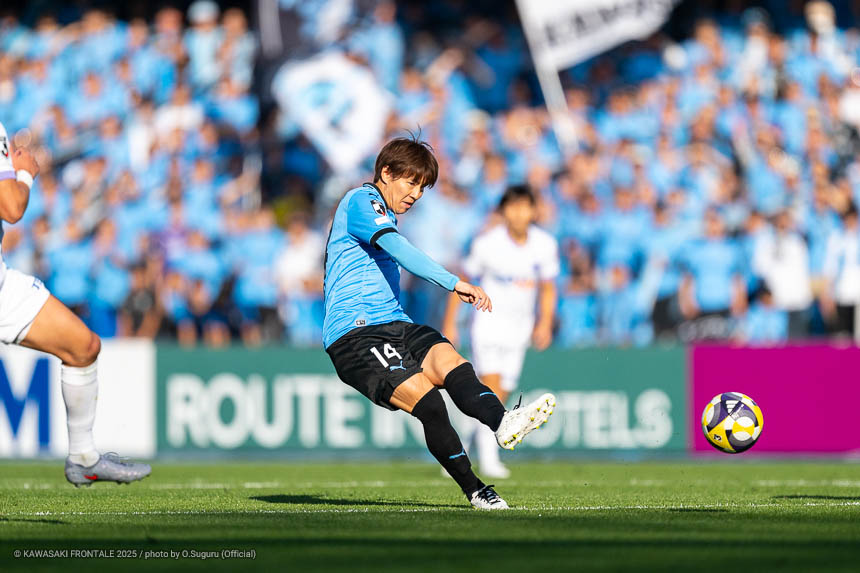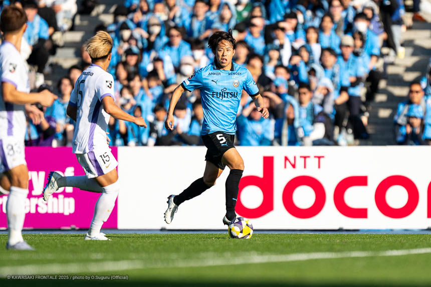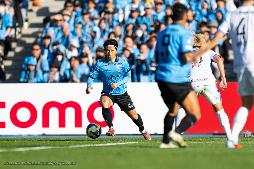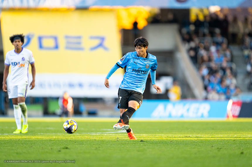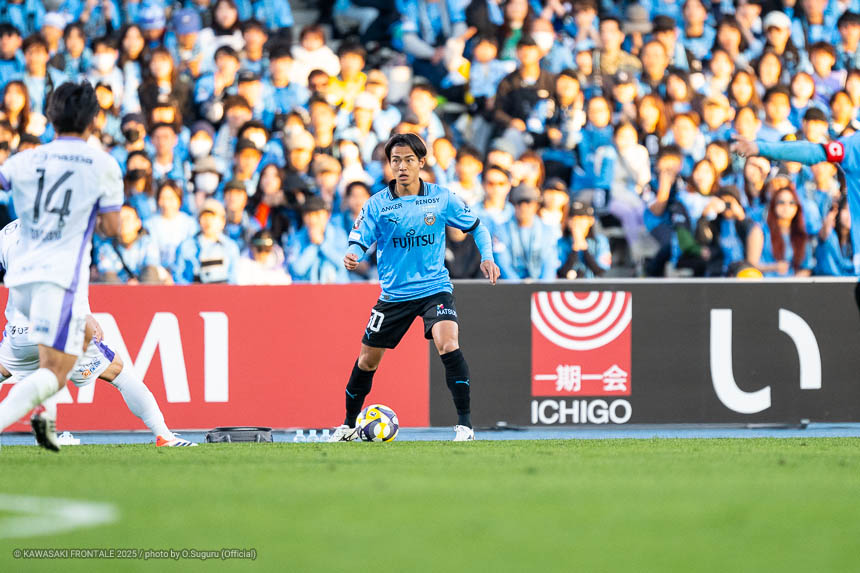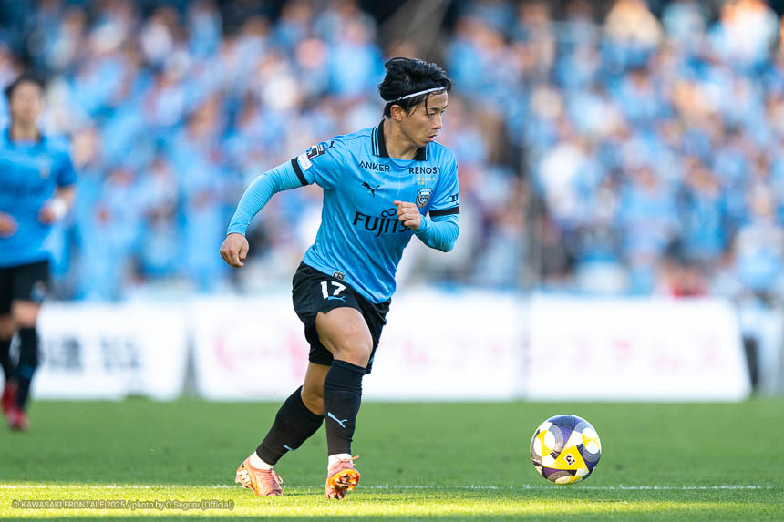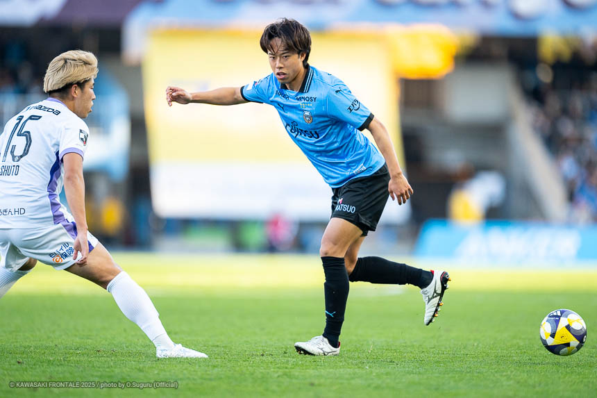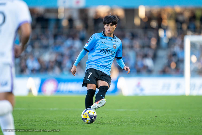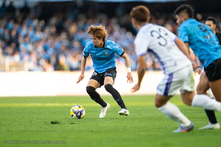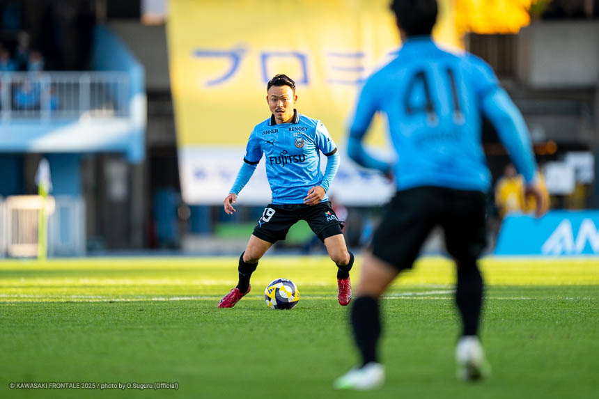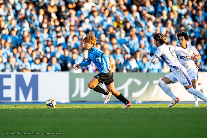 - 本当に憧れていたプロの舞台で初めてメンバーに入ることができたのはうれしく思うが、出場できていないし活躍もできていない。まだこれからという感覚。初めてメンバー入りした試合がホーム最終戦で、ソンリョンさん(チョン ソンリョン)、ジェジエウさん、安藤さん(安藤駿介)、車屋さん(車屋紳太郎)の挨拶を見て、これだけたくさんの温かいサポーターがいることに対してすごいなと思った。そんなクラブでプレーできるんだというワクワク感もある。ただ、普段の練習に参加させてもらってもまだ足を引っ張ってばかり。このチームはすばらしい選手がたくさんいるので、そういう人たちから少しずつでも吸収して、うまくなって、強くなって、フロンターレに新しいタイトルを持ってこられるような選手に成長したい。