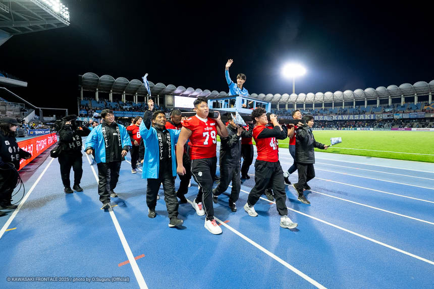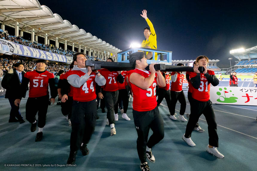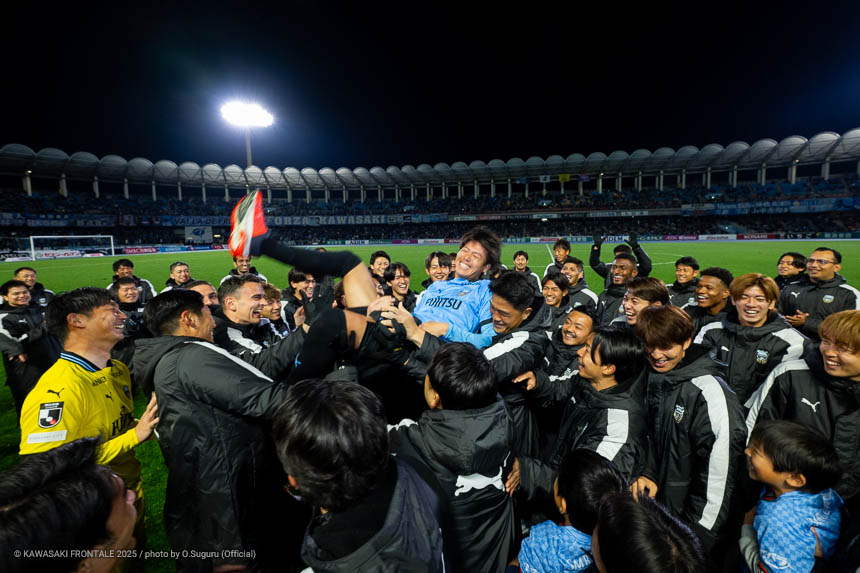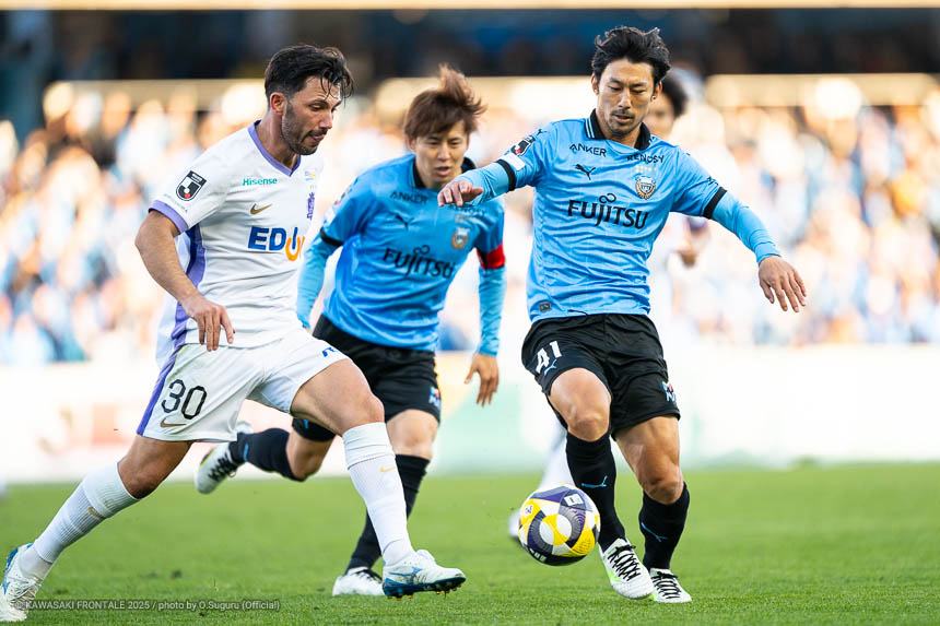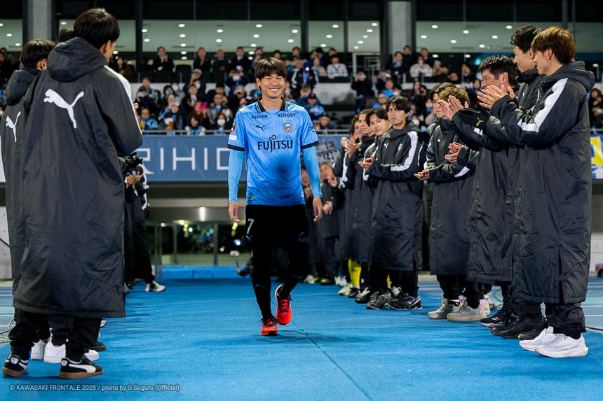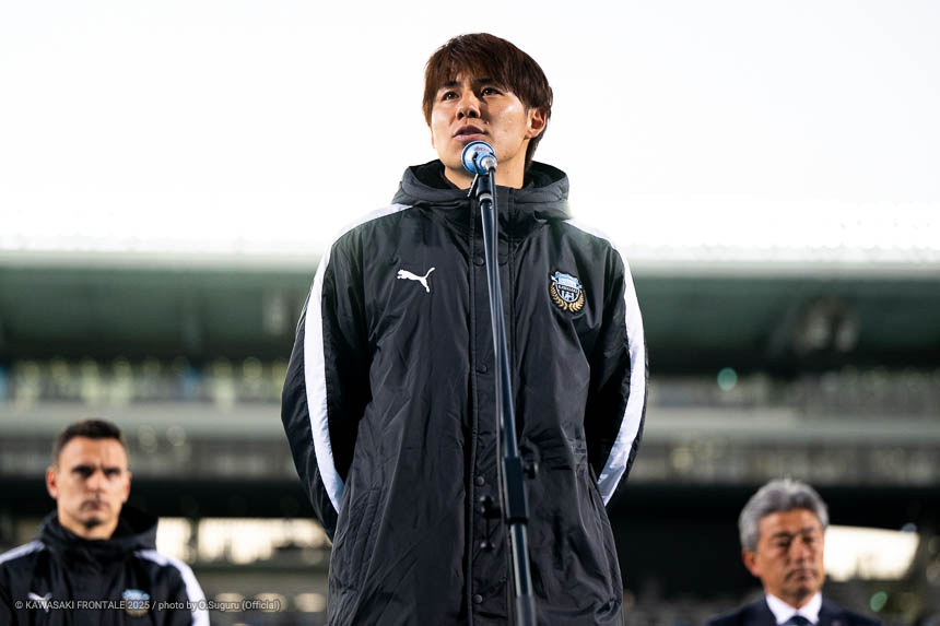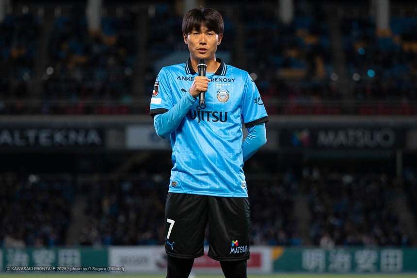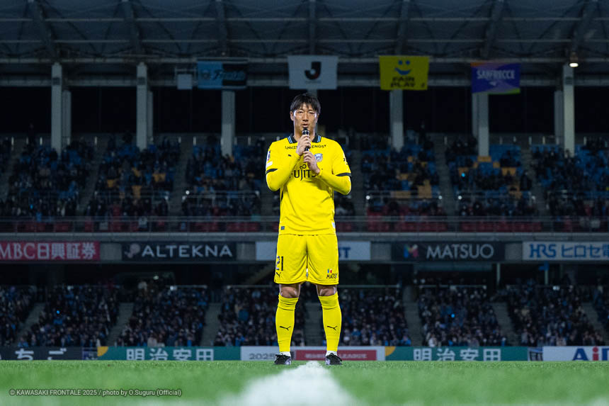 - 感慨深い1日になった。本当であれば勝ちきって終わりたかったが、みんなが1分1秒諦めずに最後の最後まで戦った結果だと思う。シンタロウ(車屋紳太郎)と一緒にピッチに立てたのもすごくうれしかった。彼自身もしっかりした守備を見せることができたと思うし、サポーターの皆さんに少しでも喜んでもらいたいという気持ちをもって戦っていた。そんな彼と一緒にプレーができて幸せに思っている。またソンリョン(チョン ソンリョン)が自分の背中にいてつねに声をかけてくれて、すごくサポートをしてくれた。これまで一緒にたくさんの勝利とタイトルを獲れたことを心からうれしく思う。彼がいままで以上に成功を成し遂げられるように応援をし続けたい。セレモニーでは感情が込み上げてきた。サポーターの皆さんは今日も含めていろんなことを自分に与えてくれた。ここで過ごした時間を自分の心のなかに刻んで、一生の宝物にしていきたい。このフロンターレのユニフォームを着てプレーできたことに、心からの感謝と喜びを感じている。まだ次のゲームがあるので準備期間で積み上げて、次の試合こそは必ずいい結果を出せるようにやっていきたい。
