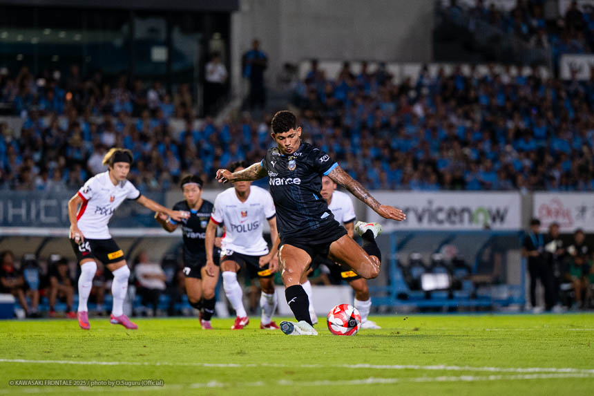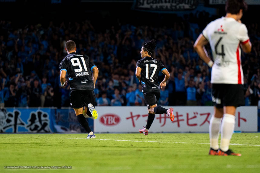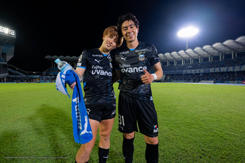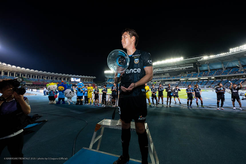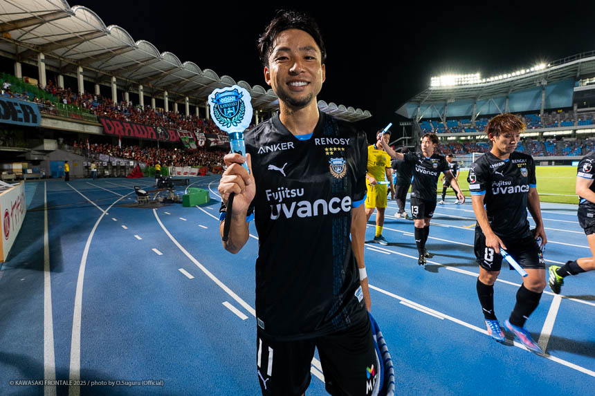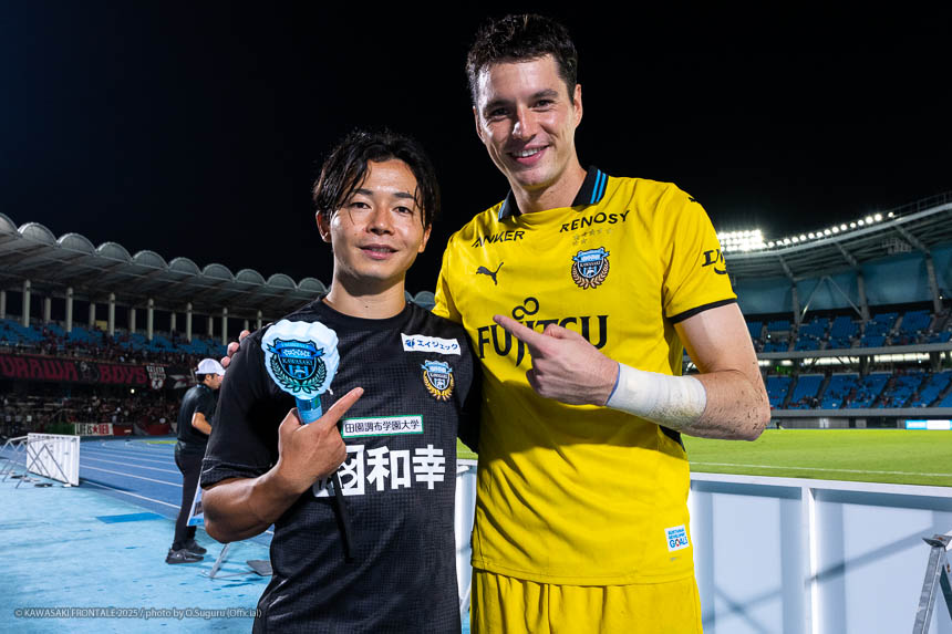 - すごい試合だった。フロンターレらしいといえばフロンターレらしいかもしれないが、最後に勝ててよかった。最近は連続して点を取れているのでいいイメージでプレーできている。(自身の得点シーンは)シュートブロックされて、そのボールがうまく枠に入った。ラッキーだった。シュート自体は自信があるし、それ以外でも落ち着いてプレーできている。