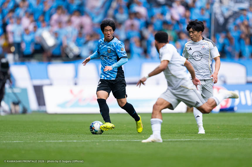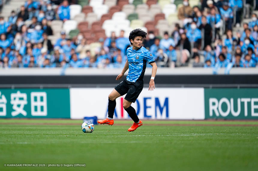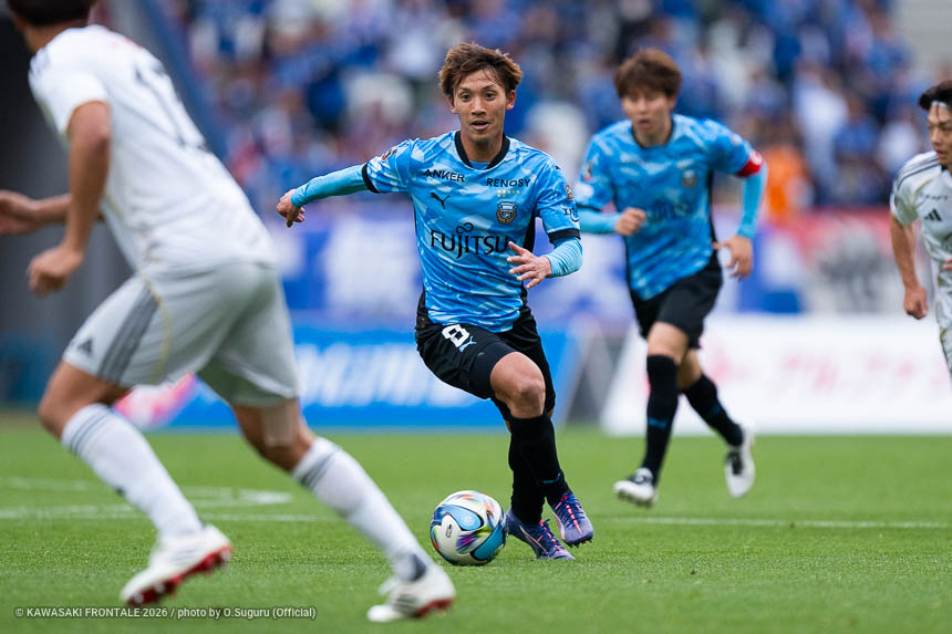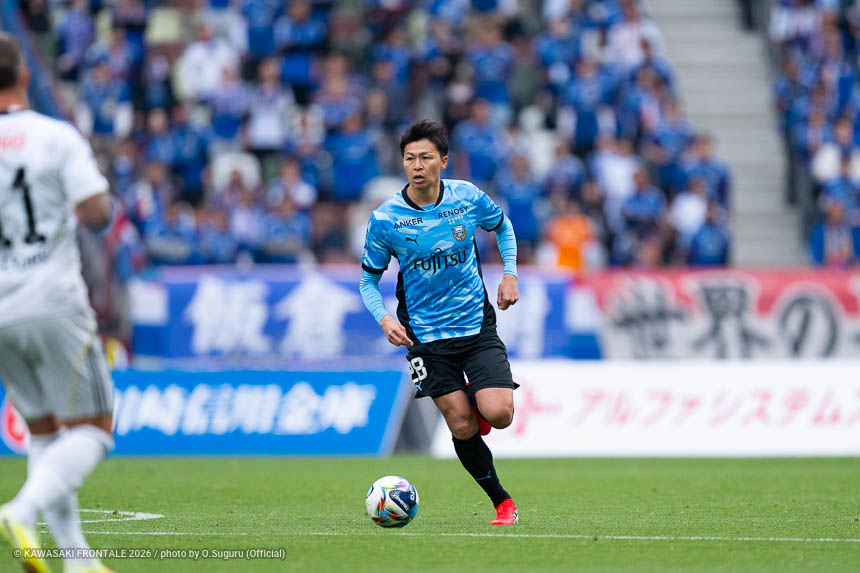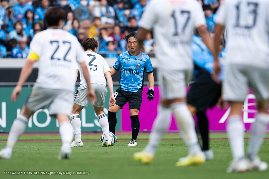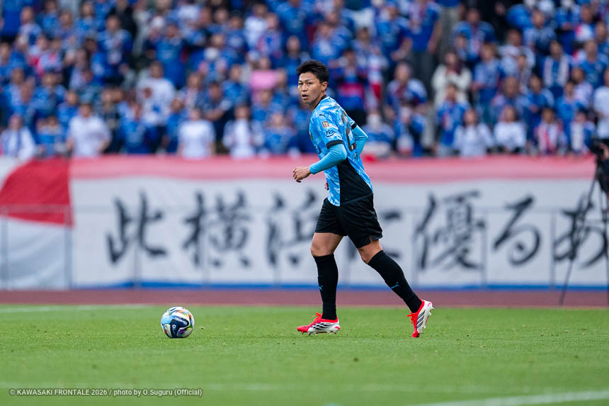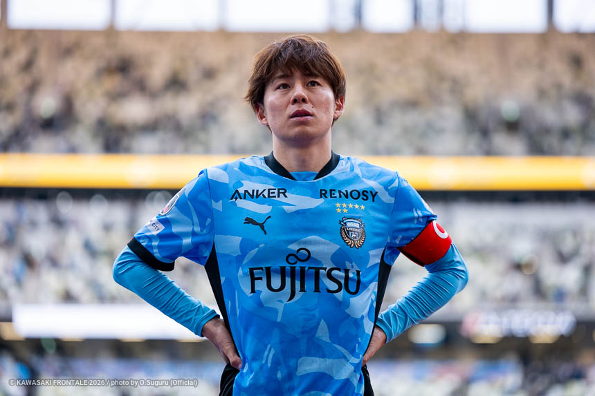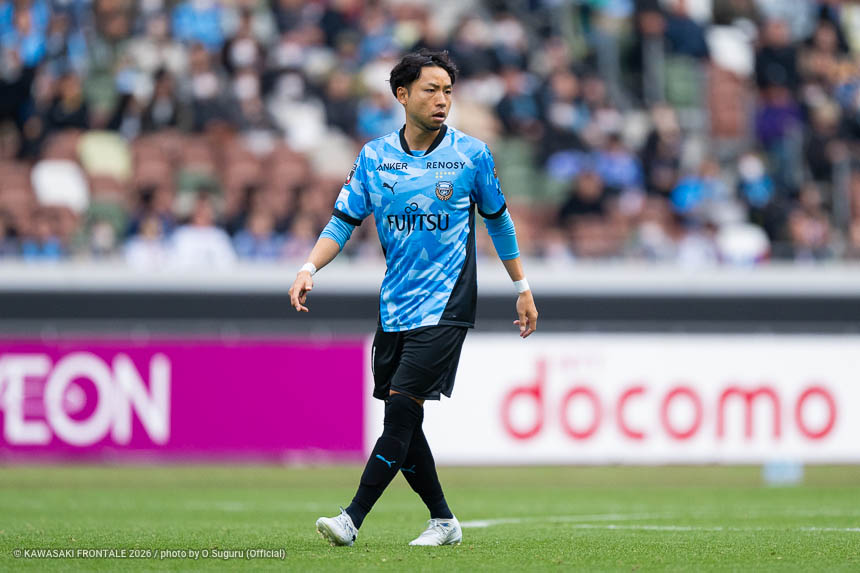 - 特別なゲームを国立で開催するにあたってスタッフの方々がすごく力を入れて集客してくれた。たくさんのフロンターレのサポーターの皆さんが自分たちを応援してくれたなかでのこういうゲームだったので、キャプテンとして申し訳なく思う。いまはそういった気持ちが一番。立ち上がりの決定機でオフサイドになってしまったが、その前のシーンで自分自身がしっかり決めていればまた違ったゲームになったと思う。すごく責任を感じている。その後ピッチの中でも声を出していたが、それがゲームの流れにうまく反映しなかったので、そこも自分の責任だと思う。攻撃面ではサイドバックのレオン(山原怜音)やソウタ(三浦颯太)が若干フリーだったのはわかっていたが、そこに素直に出しすぎて相手が4-4-2のブロックからスイッチを入れて守ろうという形になっていたのが見て取れた。一回ボランチにボールをつけるとか、今日はセンターバックが若い2人だったのでボランチの2人や自分が導いてあげられたら、マリノスのプレスをもっと分散できたと思う。そこは合わせなければいけないところ。逆に相手のスライドを追ってボランチにつけられたら、それだけで前進できるシーンもあった。そこで自信をもってやらないと、どんどん相手の圧力を受けてしまう。そこまで圧力を感じていないのに自分たちからボールを失ってしまったり、今日は何回もオフサイドを取られていた。それでは話にならない。守備でもマリノスさんがうちのサイドバックの背後を意図的に狙っているのがわかったので、そこで中から締めて守らなければいけない。そういったシーンはこの試合だけではなく数多くある。練習でやっているのにゲームで出ていないのは選手の責任でもあると思う。それは意識で変わる部分もあるし、もっと声かけが必要な部分でもあると思う。次の町田戦が本当に大事なゲームになってくると思うので、勝点3を取るために切り替えようとか簡単な言葉で済ませるんじゃなくて、また週明けから勝点3から逆算して攻撃と守備をやらなければいけない。