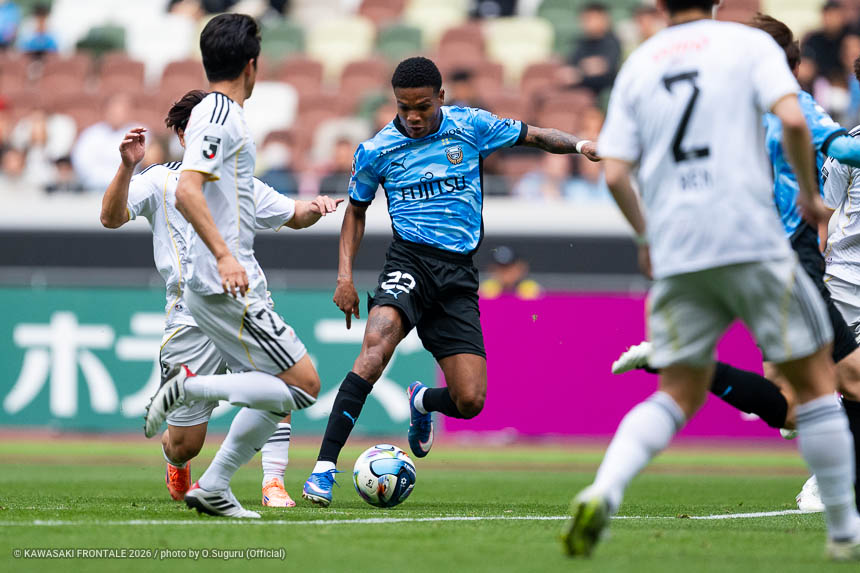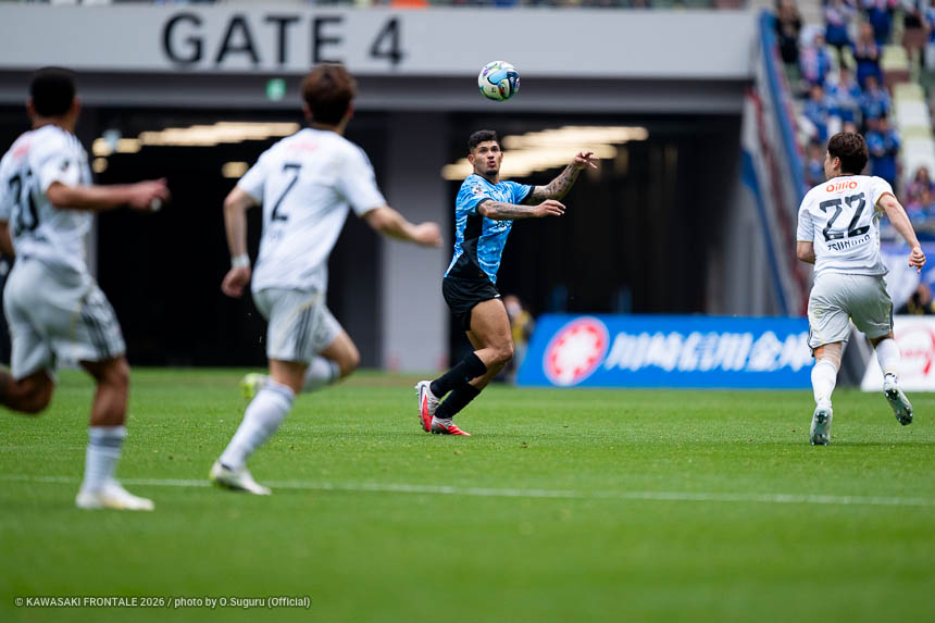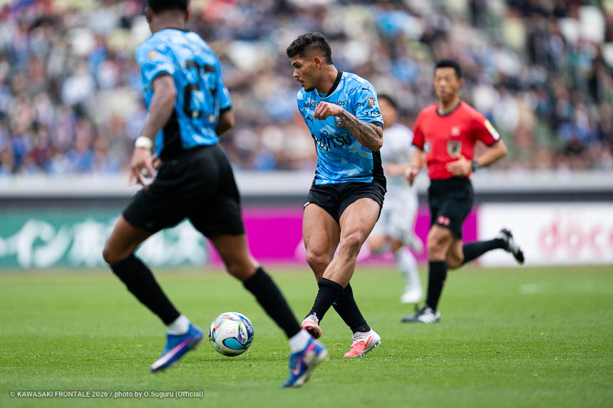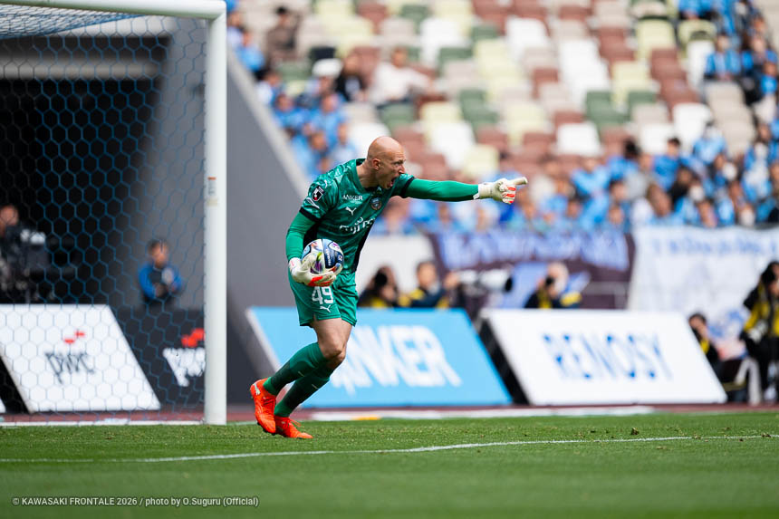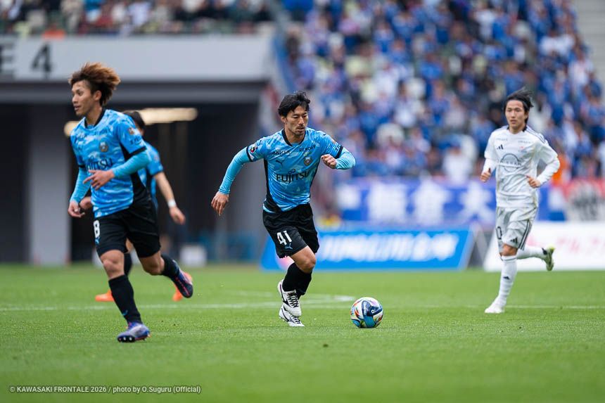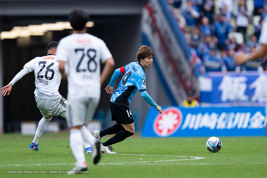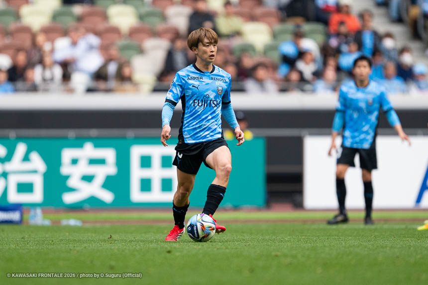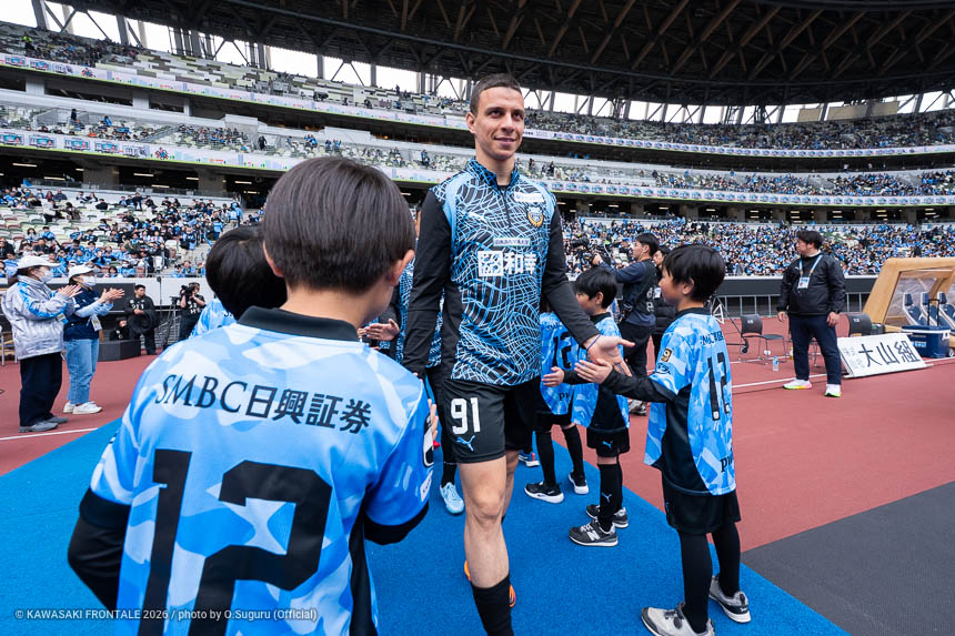 - 特別なゲームを国立で開催するにあたってスタッフの方々がすごく力を入れて集客してくれた。たくさんのフロンターレのサポーターの皆さんが自分たちを応援してくれたなかでのこういうゲームだったので、キャプテンとして申し訳なく思う。いまはそういった気持ちが一番。立ち上がりの決定機でオフサイドになってしまったが、その前のシーンで自分自身がしっかり決めていればまた違ったゲームになったと思う。すごく責任を感じている。その後ピッチの中でも声を出していたが、それがゲームの流れにうまく反映しなかったので、そこも自分の責任だと思う。攻撃面ではサイドバックのレオン(山原怜音)やソウタ(三浦颯太)が若干フリーだったのはわかっていたが、そこに素直に出しすぎて相手が4-4-2のブロックからスイッチを入れて守ろうという形になっていたのが見て取れた。一回ボランチにボールをつけるとか、今日はセンターバックが若い2人だったのでボランチの2人や自分が導いてあげられたら、マリノスのプレスをもっと分散できたと思う。そこは合わせなければいけないところ。逆に相手のスライドを追ってボランチにつけられたら、それだけで前進できるシーンもあった。そこで自信をもってやらないと、どんどん相手の圧力を受けてしまう。そこまで圧力を感じていないのに自分たちからボールを失ってしまったり、今日は何回もオフサイドを取られていた。それでは話にならない。守備でもマリノスさんがうちのサイドバックの背後を意図的に狙っているのがわかったので、そこで中から締めて守らなければいけない。そういったシーンはこの試合だけではなく数多くある。練習でやっているのにゲームで出ていないのは選手の責任でもあると思う。それは意識で変わる部分もあるし、もっと声かけが必要な部分でもあると思う。次の町田戦が本当に大事なゲームになってくると思うので、勝点3を取るために切り替えようとか簡単な言葉で済ませるんじゃなくて、また週明けから勝点3から逆算して攻撃と守備をやらなければいけない。