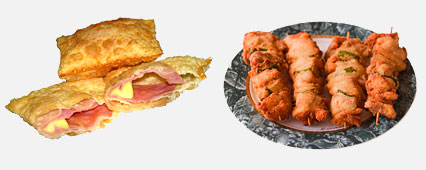 | 実施内容 | ブラジル料理販売![]() ◇エスペチーニョ(右):300円(税込)500食 ◇牛肉のパステウ(左):300円(税込)500食 |