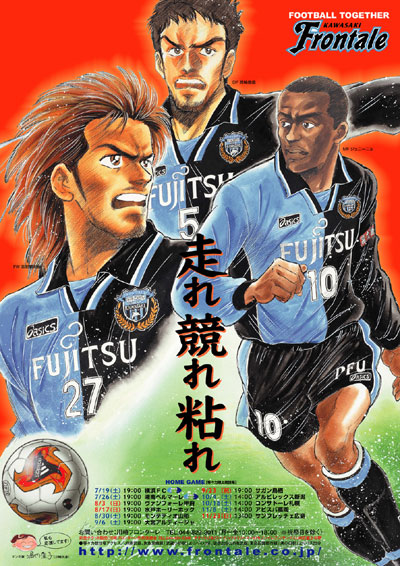 塀内夏子先生がイラストデザインした、リーグ後半戦スケジュールポスターが完成!今回、ポスターのモデルになったのは、箕輪義信、ジュニーニョ、我那覇和樹の3選手。「走れ競れ粘れ」のポスターキャッチフレーズと共に、リーグ後半戦をJ1昇格にむけて戦うべく迫力あるポスターに仕上がりました。