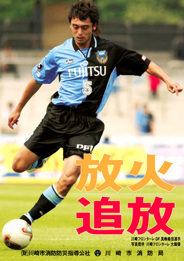 この度、川崎市消防局の秋の火災予防運動の一環として、放火防止と火災予防を啓発することを目的として作製されるポスターに、当クラブの箕輪義信選手が採用されましたので、お知らせ致します。