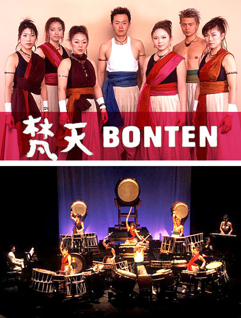 梵天は、和太鼓を中心とした音楽グループで、2000年より舞台演奏活動を開始しました。篠笛やピアノ、シンセサイザーなどを駆使したそのサウンドは、各方面より高く評価され、邦楽だけでなく、民俗音楽、クラシック、舞踊などとのコラボレーションのほか、昨年は浜崎あゆみのCDやコンサートにも参加するなど、幅広い活動で注目されています。