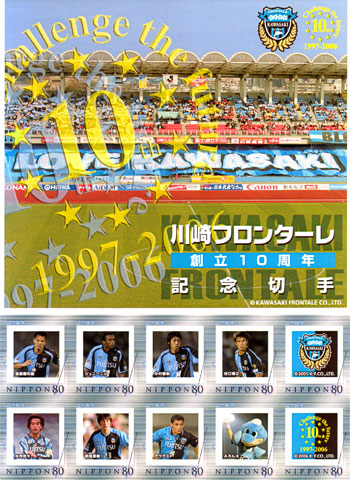 我那覇和樹、ジュニーニョ、中村憲剛、谷口博之ら現役選手はもちろん、中西哲生、アウグスト、相馬直樹ら歴代選手、ふろん太くん、エンブレム、10周年マークがデザインされたオリジナルフレーム切手となります。