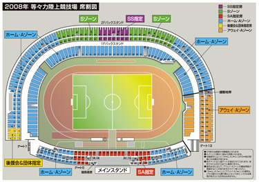 ※「SS指定席」「Sゾーン席」での鳴り物の使用、立ち上がっての応援、大旗振り等の応援活動は禁止されています。