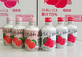 福島県内でとれたモモ・リンゴを使用したジュースです。100%ジュースではありませんが、飲めば美味しさの違いがわかります。その場で飲めます!