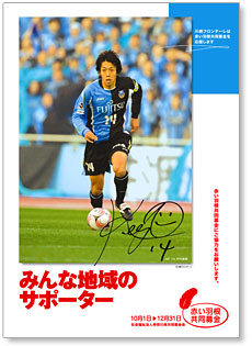 赤い羽根共同募金は、都道府県を単位に毎年1回、厚生労働大臣が定める期間内(10月1日〜12月末日)に限って、広く寄付金を募集し、区域内における民間社会福祉事業や地域福祉の推進を図るために実施される社会福祉法に規定された寄付金募集運動です。近年、この募金に寄せられる寄付金額は目標額を達成するのに全国的に厳しい状況にある反面、民間社会福祉施設及び団体等からの配分申請は増加しております。このたび、川崎フロンターレに同募金運動の協力依頼をしたのは、貴クラブが地域密着を基本理念とし、川崎市をホームタウンにして様々な市民活動への参画、福祉活動への支援を積極的に実施されているところが、同じく地域密着を理念とする赤い羽根共同募金のあり方と合致しており、川崎市内における川崎フロンターレの知名度の高さや地域に密着した組織運営体制は、川崎市民への共同募金への理解や参画をより促すために適役であると考えお願いしました。