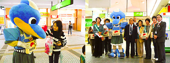 各区の駅前や区民祭でふろん太が募金活動をお手伝いします!