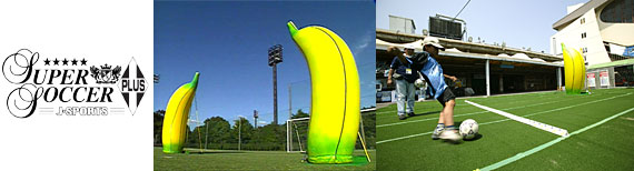 TBSサッカー番組「スーパーサッカー」でおなじみ「バナナKING」が登場!カーブをかけたボールを蹴って、見事ゴールを決めた人には、賞品の「バナナ」をプレゼント!