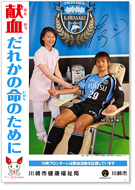 この度、川崎市健康福祉局が作成した献血の啓発ポスターに、当クラブの谷口博之選手が採用されましたので、お知らせ致します。このポスターは現在、若年層の協力が減少している献血を川崎フロンターレが応援することで皆さんに、献血に興味を向けていただくことを目的としています。