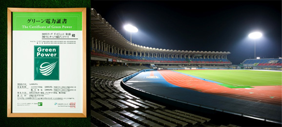 八都県市温暖化防止一斉行動(エコウェーブ)の活動の一環として、昨年よりホームゲームのナイター1試合で使用する照明電力をグリーン電力として購入しました。
