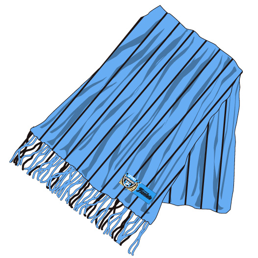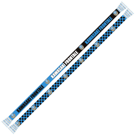 季節を問わず活躍するおしゃれアイテムといえばストール! 今シーズンは、そのストールをフロンターレカラーでご用意しましたよ。サックスベースにブラックのラインがアクセントになっています。