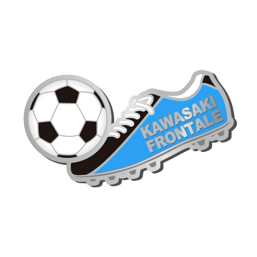 フロンターレカラーのスパイクがボールを蹴っているデザイン。キャップやジャケットに、バッグやポーチになどなど、オシャレなワンポイントになるはず。もちろん、ピンズコレクターの方は見逃せませんよ!