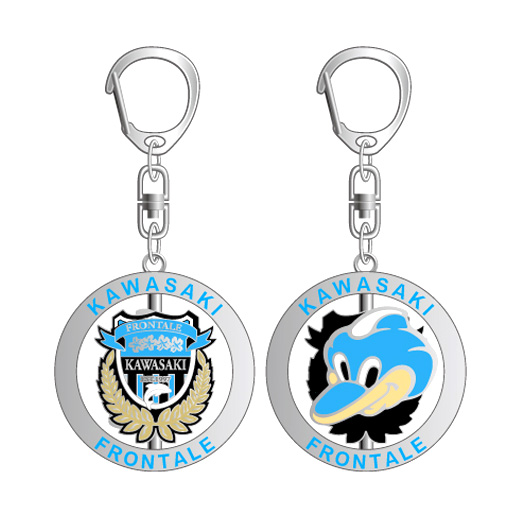 新しいタイプのキーホルダーが登場! 真ん中のエンブレムとふろん太がくるくる回転して、1個で2度楽しめるお得なアイテムです。