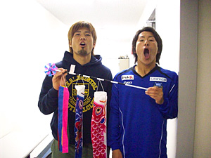 4日(火)・5日(水)の2日間、フロンターレグッズを1,050円(税込)以上お買い上げの方に抽選で、小宮山尊信選手&登里享平選手サイン入りミニこいのぼり、名付けて「コミ☆ノボリ」などが当たる抽選会を実施します。