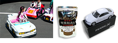 カレーバトルの投票券をお持ちの方にその場でカレーなるプレゼントが当たるダブルチャンスの抽選会を実施。賞品には、エバラ食品工業提供「横濱舶来亭カレーフレーク」や加賀電子提供「アルバ熟成レトルトカレー」はもちろん目玉はゴールドウィン提供カレー(加齢)臭対策下着「マキシフレッシュプラス」、カーレースに因んだ横浜トヨペット提供「MARK Xミニカー」などカレーに因んだ賞品が盛りだくさん。カレーを食べて、カレーなプレゼントをゲットしましょう!