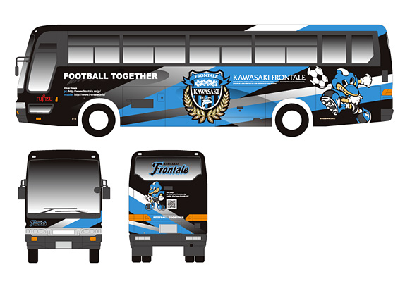 川崎フロンターレは、2005年7月より、トップチーム選手の移動、及びアカデミー(U-18~U-10)選手の移動の際に利用しておりますオフィシャルチームバスの「デザイン変更」を12月25日付で行いますので、お知らせ致します。なお、今後も、運行管理については「国際自動車株式会社」となります。