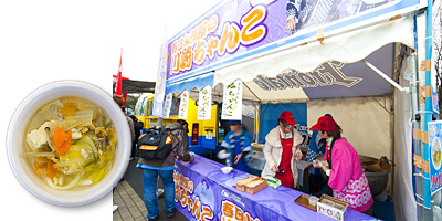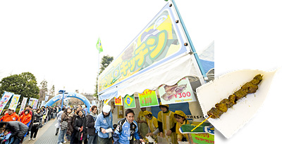 等々力陸上競技場 入場口前の「川崎フロンパーク」と銘打ったイベント広場では、川崎市唯一の相撲部屋「春日山部屋の川崎ちゃんこ」や川崎市在住の日系ブラジル人の方による「ブラジルキッチン」など魅力満点! また、新登場の堂本製菓「大師巻」や「かわさき応援バナナのチョコバナナ」、新メニューが加わったエバラ食品「KAWASAKI CURRY STADIUM」や「とんかつ和幸弁当」など今年もおいしいグルメで皆様をお待ちしています!