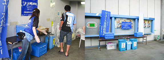 ①ホームゲーム開催時のリユース食器とエコキャップの回収にご協力下さい。