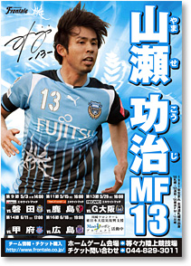 2011シーズンのスケジュールポスター第2弾(山瀬功治選手バージョン)の完成を記念して、オフィシャルグッズショップ「アズーロ・ネロ」、武蔵小杉駅前のケンタッキーフライドチキンインレット小杉店、溝ノ口駅前のケンタッキーフライドチキン溝ノ口店の3店舗で、「スケジュールポスター」プレゼントキャンペーン第2弾を実施致しますので、お知らせ致します。ぜひこのチャンスを逃さず、ポスターをGETしてください!