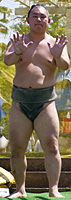 ■力士に手押し相撲で挑戦! 「張り手スモウ対決」