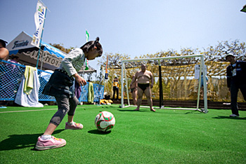 | 開催内容 | 春日山部屋力士がGKになったミニゴールでPK対決 |