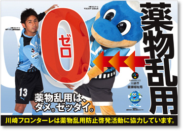 川崎フロンターレでは、川崎市健康福祉局と麻薬、覚せい剤等の薬物乱用防止を推進するため厚生労働省等が主催する「ダメ。ゼッタイ。」普及運動(6月20日〜7月19日)の期間に合わせて薬物乱用防止啓発広報等を実施しておりますが、今年度、市内で掲示する啓発用ポスターについて、山瀬功治選手がポスターモデルに採用されましたのでお知らせいたします。