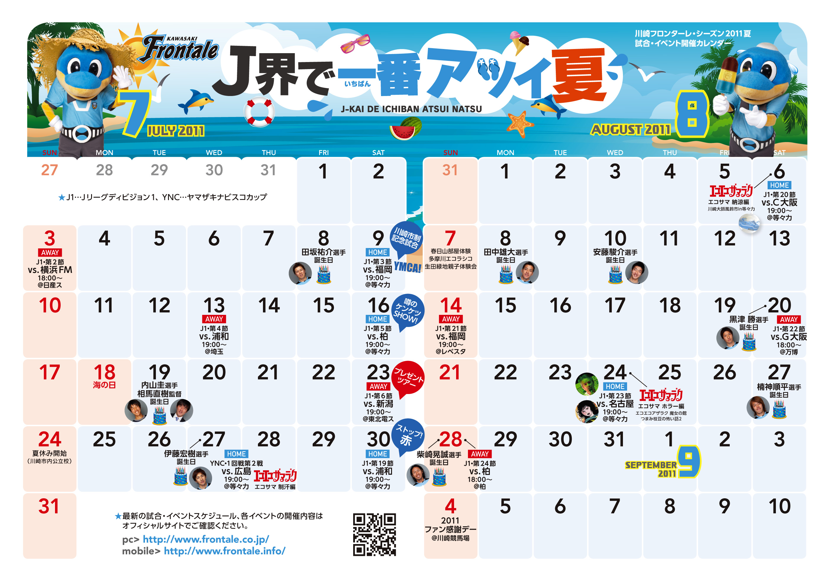 川崎フロンターレでは、今年の夏のスケジュールをすべてフロンターレ絡みで満喫して欲しい!!との願いを込め「J界で一番アツい夏」と題し、様々な企画を検討中!!ぜひ夏休みの予定は「フロンターレ」で!!皆さんのご参加をお待ちしています!!