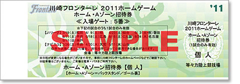 ※「後援会特典チケット」とは、川崎フロンターレ後援会の入会特典として配布される「ホーム・Aゾーン招待券」(緑色)です。