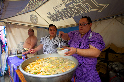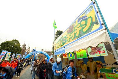 等々力陸上競技場 入場口前の「川崎フロンパーク」と銘打ったイベント広場では、川崎市唯一の相撲部屋「春日山部屋の川崎ちゃんこ」や川崎市在住の日系ブラジル人の方による「ブラジルキッチン」など魅力満点! また、新登場の堂本製菓「大師巻」や「かわさき応援バナナのチョコバナナ」、新メニューが加わったエバラ食品「KAWASAKI CURRY STADIUM」や「とんかつ和幸弁当」など今年もおいしいグルメで皆様をお待ちしています!