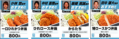 小林選手おススメ「一口ひれかつ弁当」(一口ひれかつ×3) ◆復活!!川崎大師名物!松屋総本店のとんとこ飴 ◆川崎フロンターレグッズショップ ダブルダッチパフォーマー ”Reg-Stlye”による席ツメパフォーマンス!